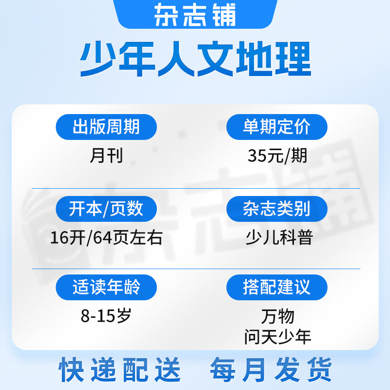 天猫1-4月新 少年人文地理杂志订阅 单期/年订/组合订阅 2026半年/全年订阅 8-15岁青少年设计的地理科普期刊杂志订阅 杂志铺