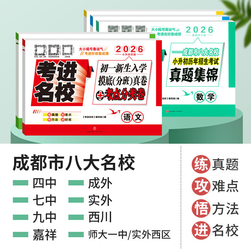 天猫考进名校小升初真题卷语文数学英语成都市八大名校小升初招生分班入学摸底考试真题集锦考点分类卷四川重点中学小考总复习模拟试卷