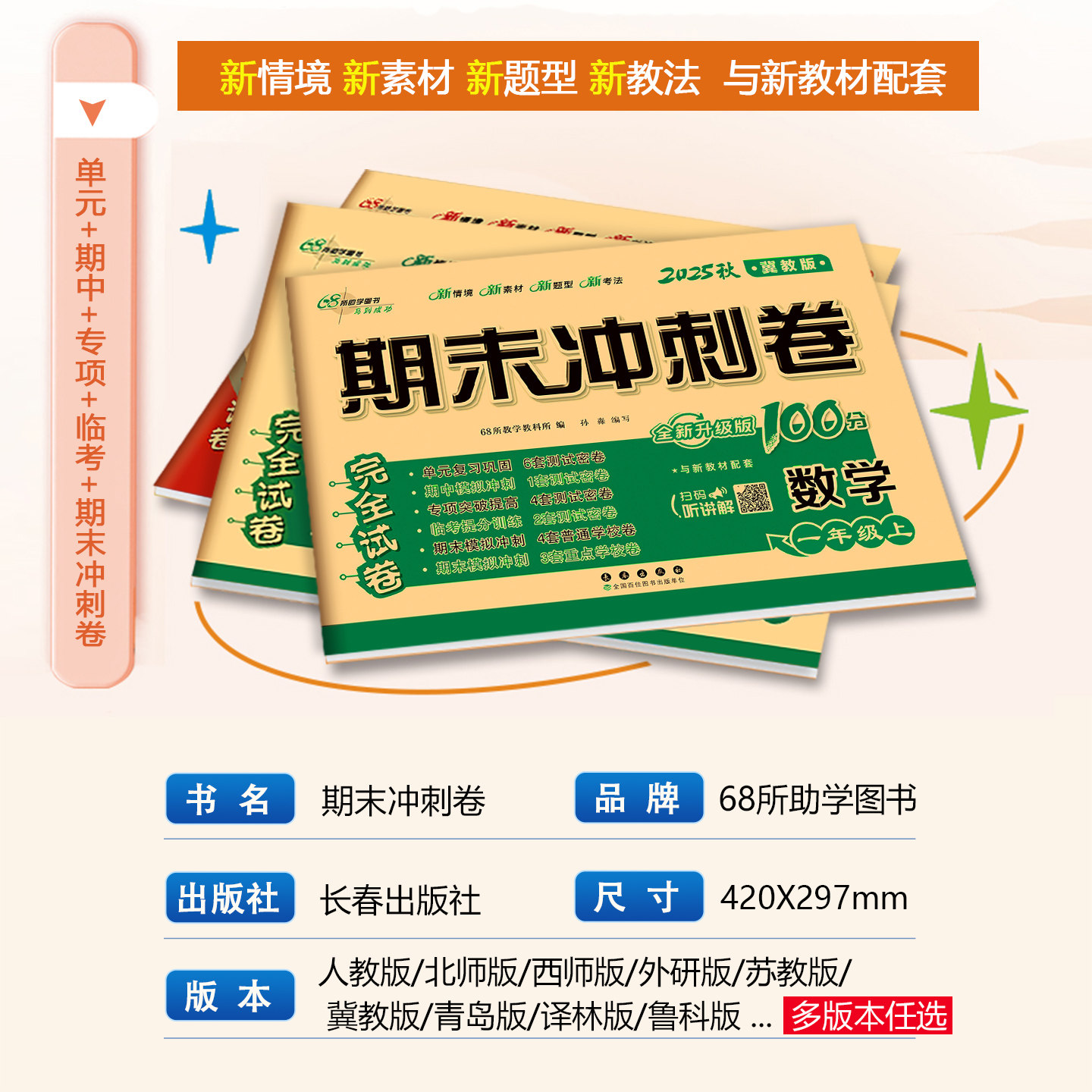 天猫2025秋期末冲刺一百分100分冀教版一二三四五六年级下册上册试卷测试卷河北适用语文人教数学英语冀教同步练习册单元期中考试卷子