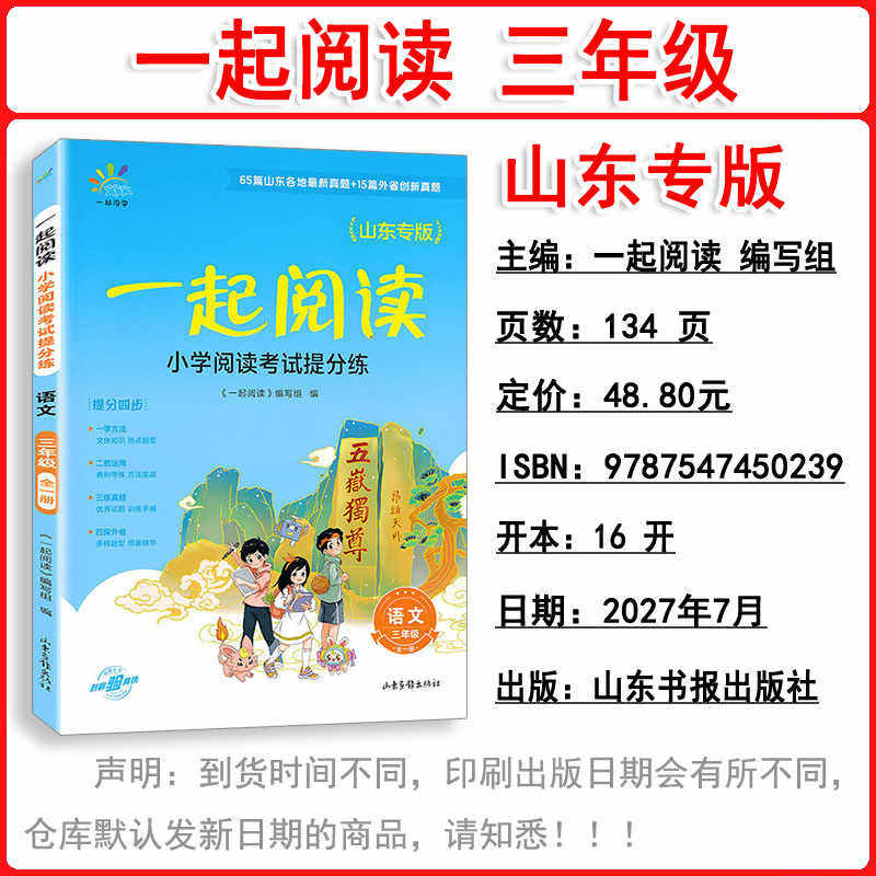 2025新版《53一起阅读》语文阅读考试提分练(山东专版)专为小学1-6年级学生设计,紧扣山东地区语文教材与考试要求。丛书同步课本内容,一课一练,精选历年真题与典型题型,注重阅读能力与答题技巧的双重提升。涵盖二年级至六年级各年级段,题型丰富,难度递进,帮助学生夯实基础、突破阅读难点。每册配备详细解析,便于学生自查自纠,家长辅导更省心。结合新课标理念,强化语言积累与思维训练,是提升语文阅读成绩的高效练习册,深受师生和家长信赖。