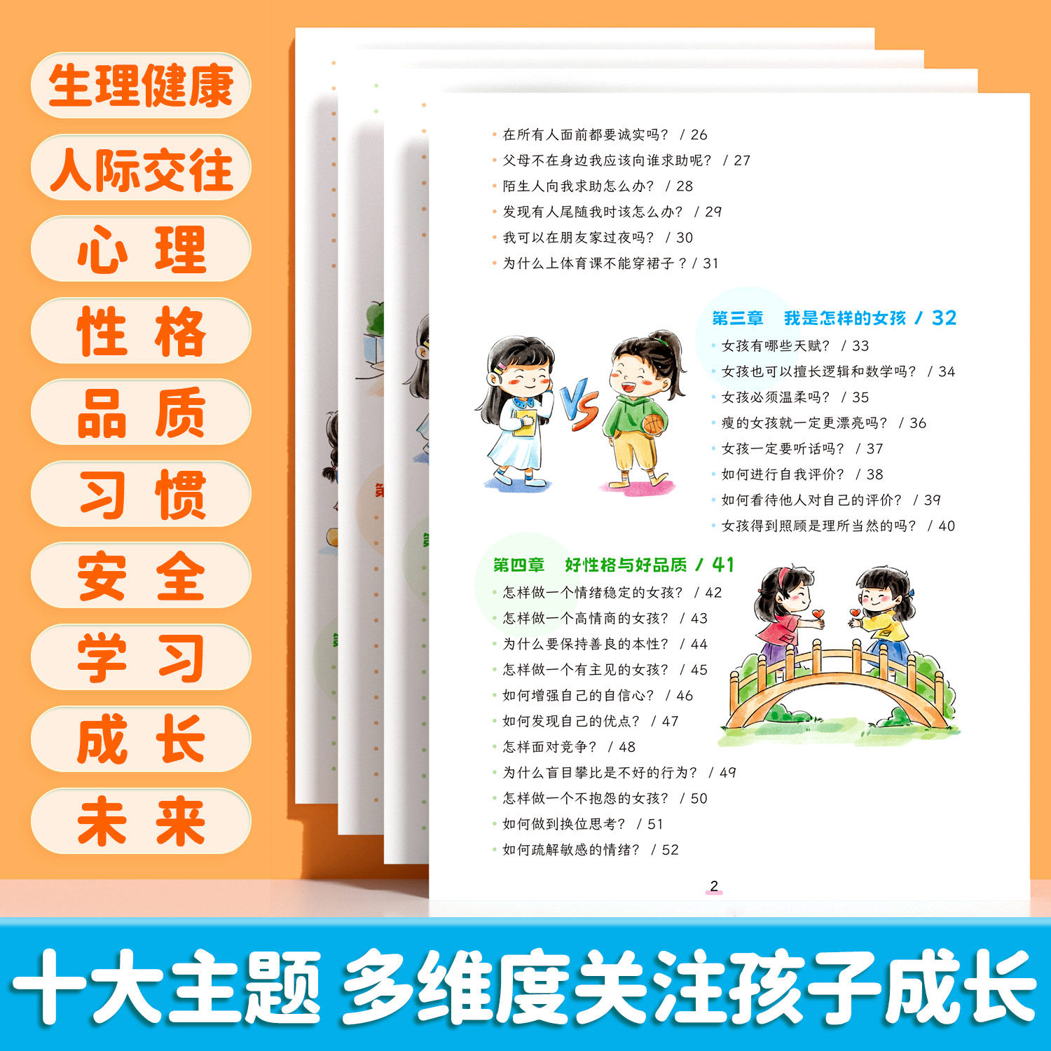 这是一套专为6-12岁儿童设计的正版成长启蒙丛书,以生动有趣的漫画形式,帮助女孩和男孩全面认识自我、提升安全意识与心理健康。内容涵盖身体保护、隐私安全、情绪管理、人际交往及青春期变化等关键主题,融合儿童心理学与科普知识,语言通俗易懂,画面温馨亲和。书中通过真实情境模拟,引导孩子学会识别危险、勇敢说“不”,并建立自信与自尊。既是家长进行早期教育的实用指南,也是孩子自主阅读的百科宝典,助力青少年健康、快乐成长,学会保护自己,拥抱美好未来。