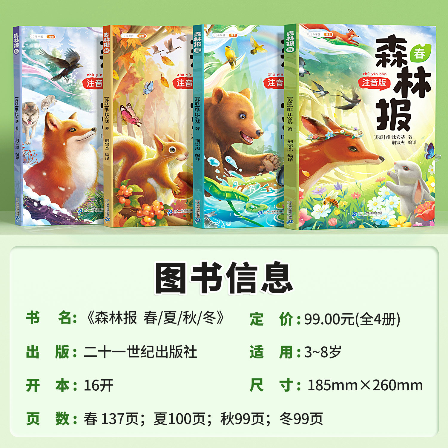 《斗半匠森林报·春夏秋冬》全套四册,正版发行,专为小学生设计,涵盖二至五年级课外阅读需求,尤其适合四年级上下册学生同步拓展阅读。本书以四季为线索,融合自然观察、科普知识与童话趣味,图文并茂,全文彩印并配有拼音,助力低年级学生自主阅读。内容生动展现森林中动植物的四季变化,穿插《狼王梦》等经典故事,激发孩子探索自然的兴趣。兼具文学性与科学性,是提升阅读能力、培养生态意识的优质读物,深受家长与老师推荐,是小学生课外阅读的理想之选。