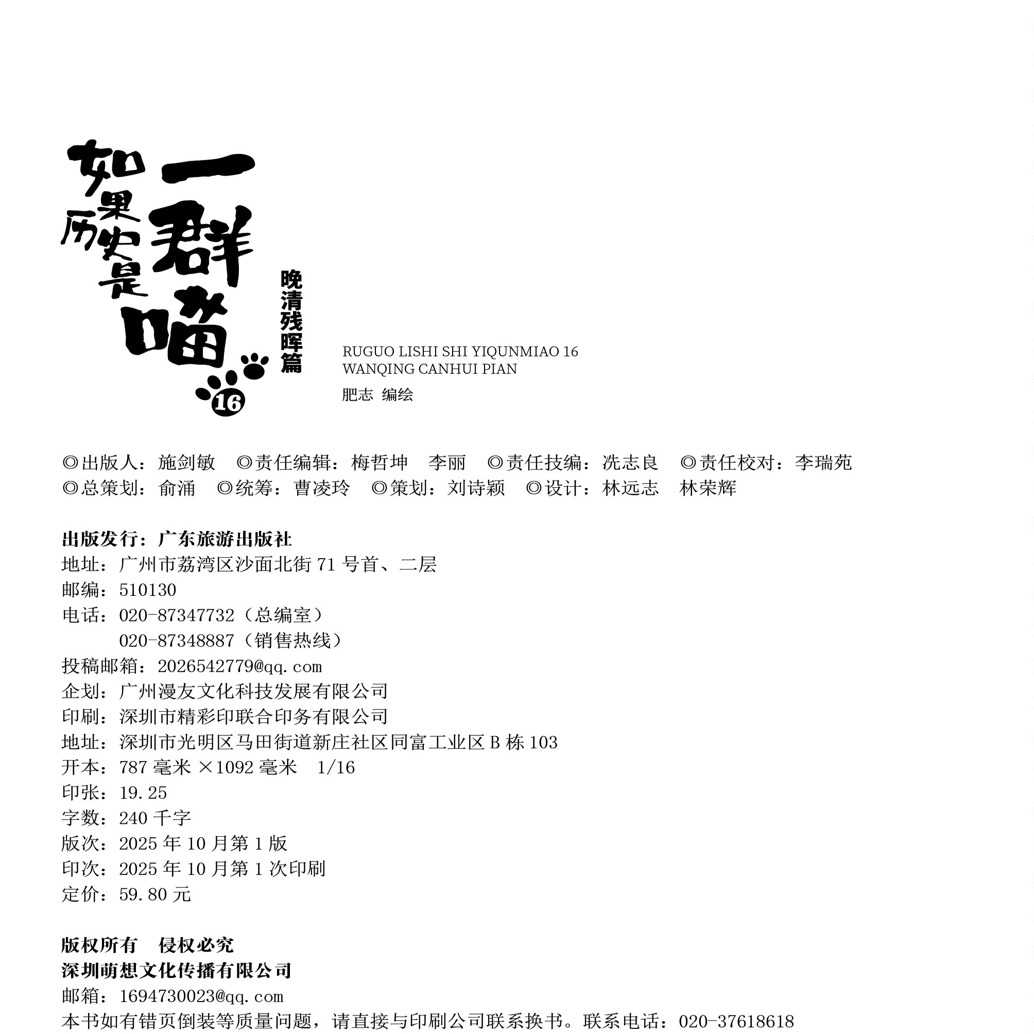 天猫喵16新书上市 如果历史是一群喵16 晚清残晖篇 系列终章 如果历史是一群喵1-16册 8-12岁小学生中国历史漫画绘本科普书籍课外书籍