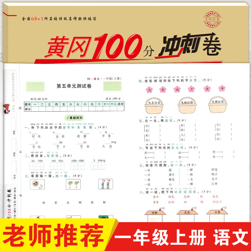 黄冈100分冲刺卷一年级二年级三年级四五年级六年级上册下册试卷测试卷全套人教版语文数学英语练习题练习册单元期末小状元达标卷