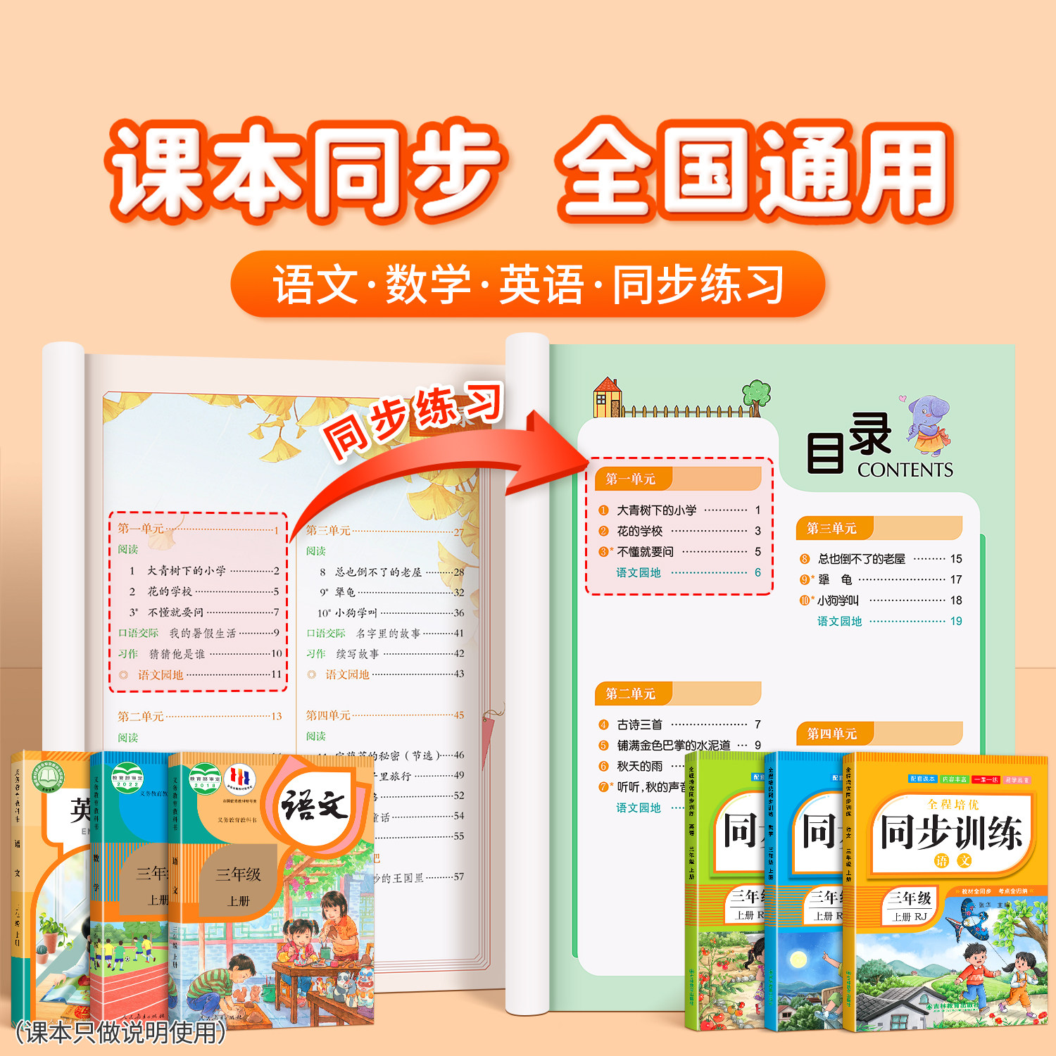 天猫2025新版三年级上册下册语文数学英语同步练习册全套一课一练部编人教版教材同步练习题小学生课课练课堂作业专项训练题随堂测试卷