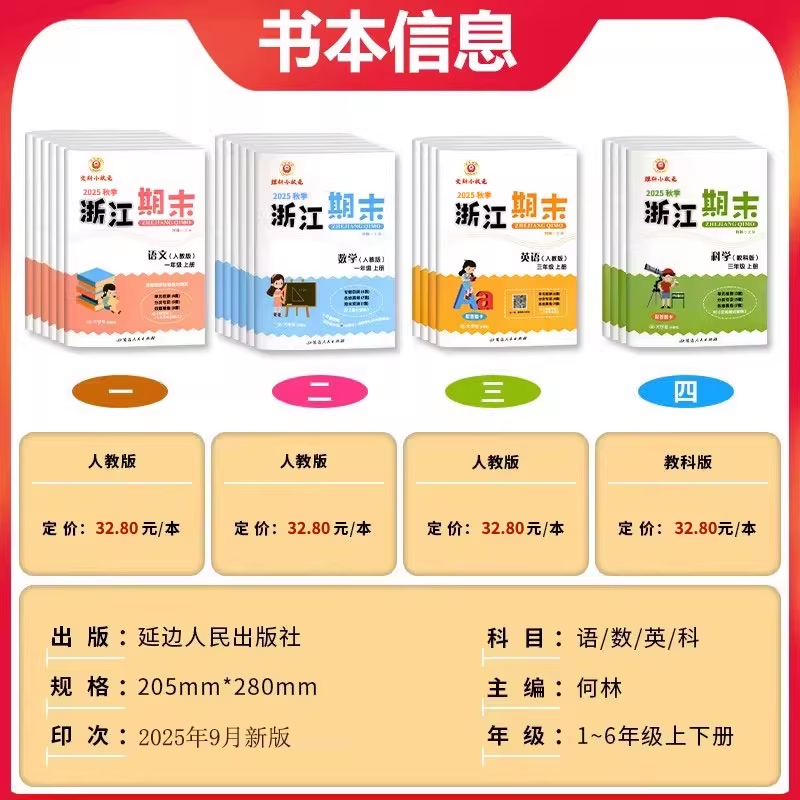 天猫【新华书店】2025秋浙江期末试卷一二三四五六年级小学上册语文数学英语科学人教版教科版北师版试卷全套真题复习资料同步练习题册