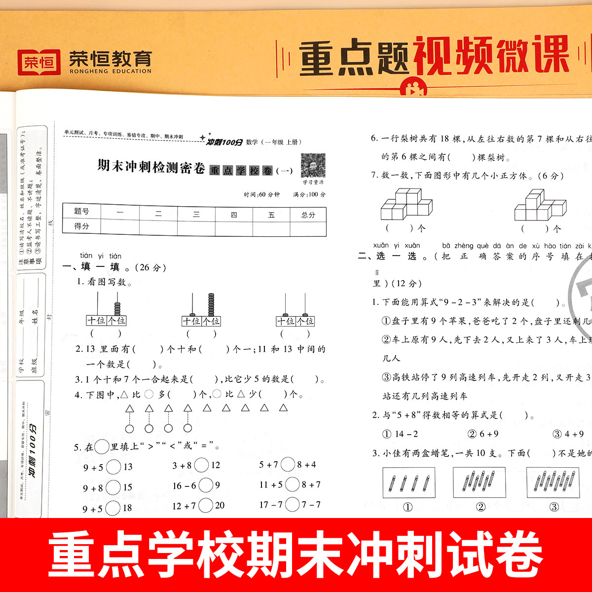 一年级上册语文数学试卷全套小学生测试卷人教版同步练习册练习题单元月考专题期中期末综合考试卷子专项训练 1上学期语数名卷RJ