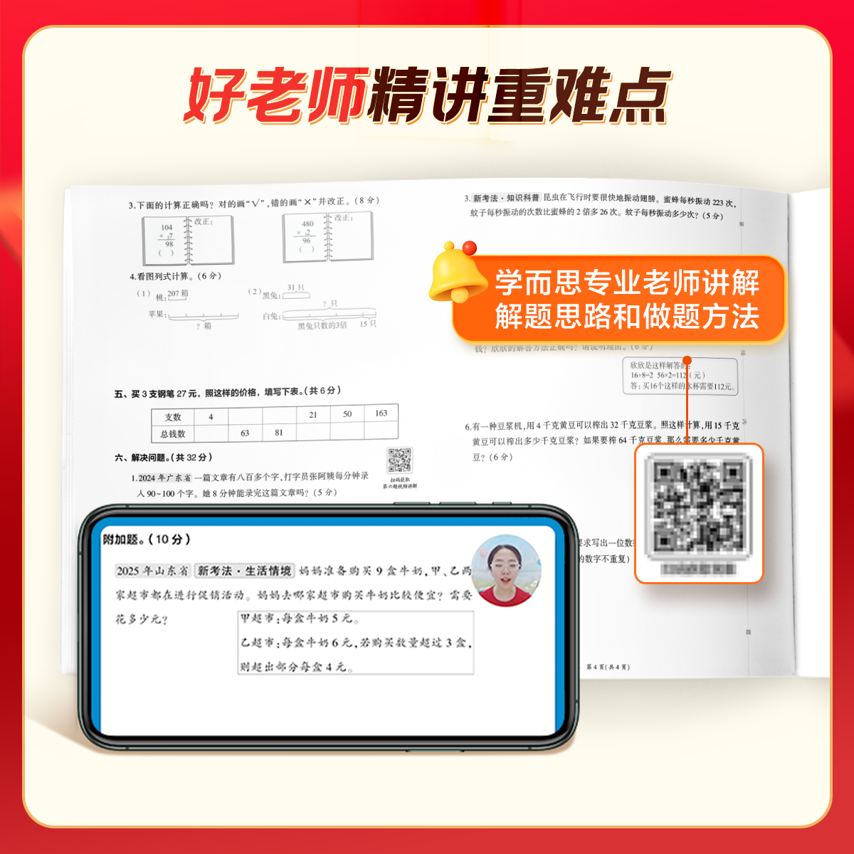 学而思2025年冬季新品《期末冲刺100分试卷》上册,专为小学一至六年级学生打造,涵盖语文、数学、英语三科,人教通用版,严格同步课标要求。试卷系统整合单元、期中、期末复习重点,题型丰富、难度分层,精准对标考试考点。每套试卷配备详细解析,帮助学生查漏补缺,提升应试能力。精选典型例题与易错题型,强化知识巩固与综合运用。设计科学,题量适中,既适合课堂练习,也适用于家庭复习。是学生期末备考的高效提分利器,助力轻松冲刺满分,夯实基础,稳步提升学业成绩。