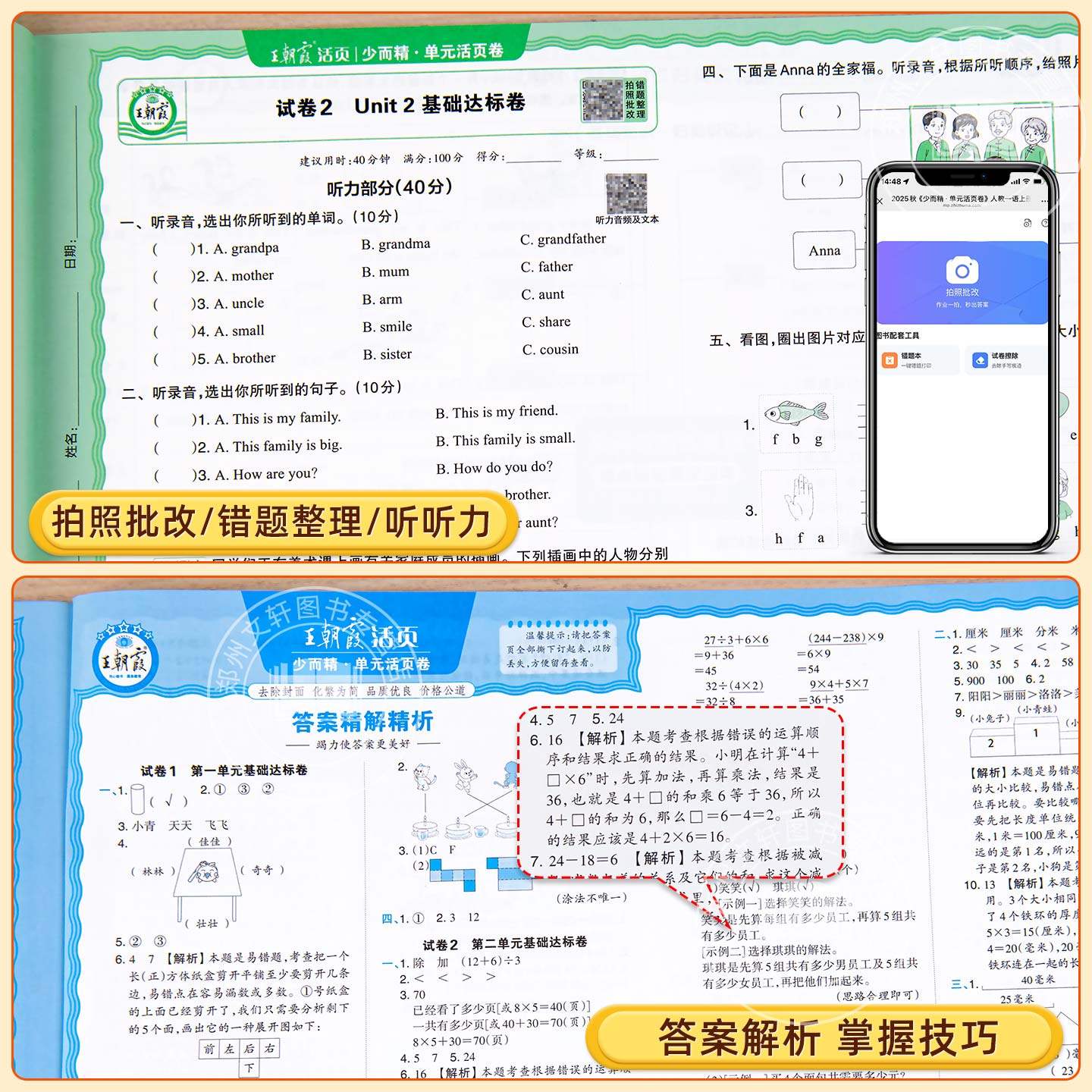 2025秋三年级上册《王朝霞》测试卷全套,涵盖语文、数学、英语三科,紧扣人教版、北师大版、苏教版等主流教材,同步单元知识要点。试卷采用活页设计,便于拆分使用,包含单元测试卷、期中、期末冲刺卷,题型丰富,难度适中,注重基础巩固与能力提升。每套试卷均配有详细答案解析,帮助学生查漏补缺,提升应试能力。适合小学三年级学生日常练习、阶段复习和考前冲刺,是家长辅导、老师检测的优质学习资料,助力孩子夯实基础,稳步提高学习成绩。