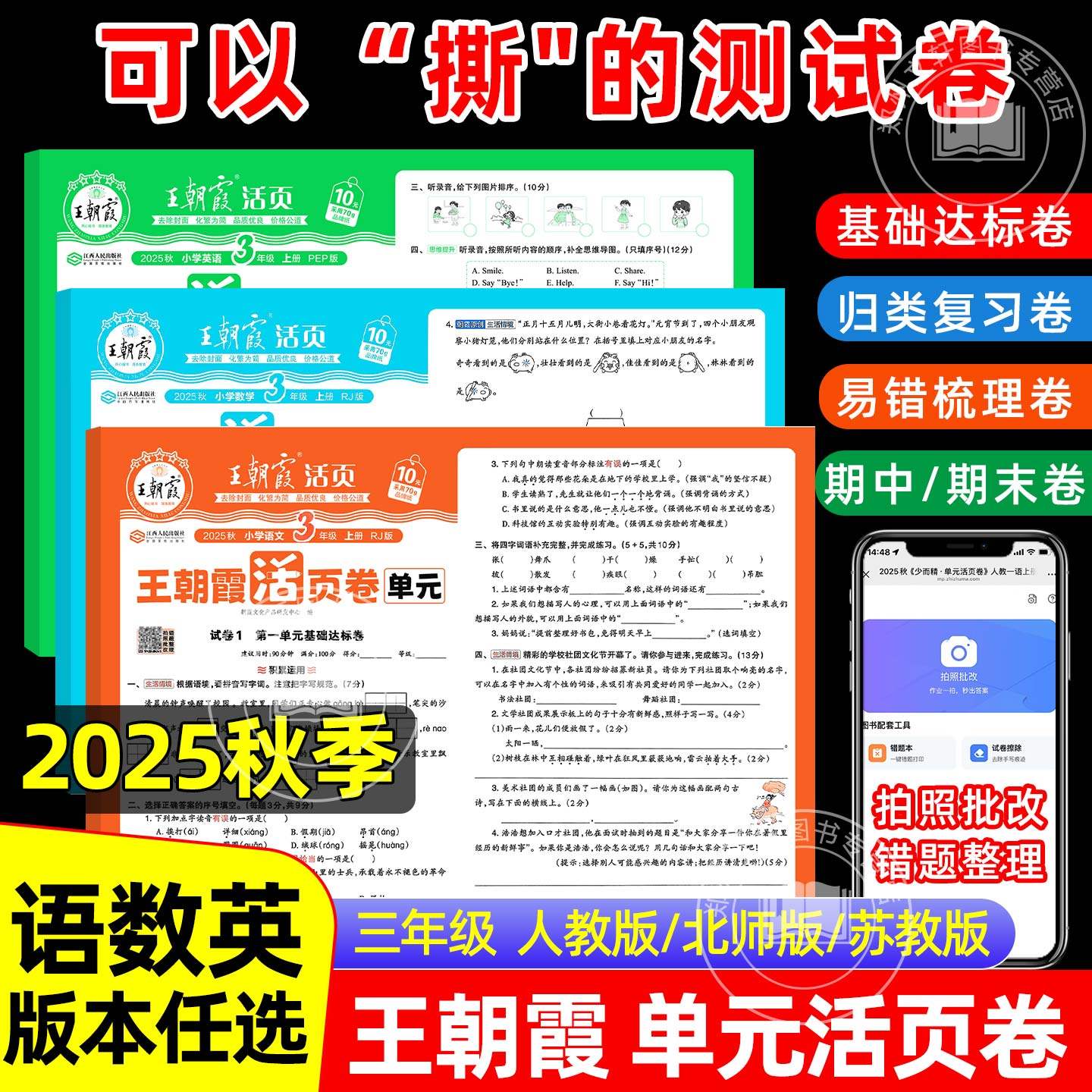 天【抖音同款】王朝霞活页期末卷2025秋季上册三四五六年级一二年级期末试卷精选人教北师苏教版语文数学英语冲刺100分期末考试