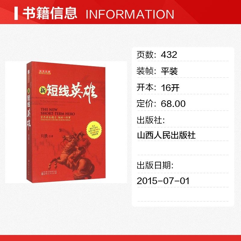 《舵手经典·新短线英雄》由只铁编著,山西人民出版社出版,是一部专注于短线实战操作的经典教程。本书系统讲解短线炒股的核心技巧,重点剖析K线形态、技术指标与资金流向的联动关系,帮助投资者精准把握买卖点。通过大量真实案例图解,直观展示主力操盘手法与市场情绪变化,提升实战应变能力。书中融合趋势判断、量价分析及风险控制策略,强调“快、准、狠”的短线操作原则,适合有一定基础的股民深入学习。无论是新手入门还是老手精进,本书都是提升短线交易水平的重要参考,被誉为短线高手的实战宝典。