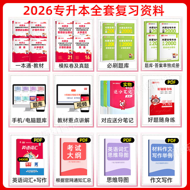 天猫库课2026年内蒙古专升本复习资料2025教材必刷题真题试卷必刷2000题英语文政治计算机信息技术统招专升本考试历年真题卷网课易学仕