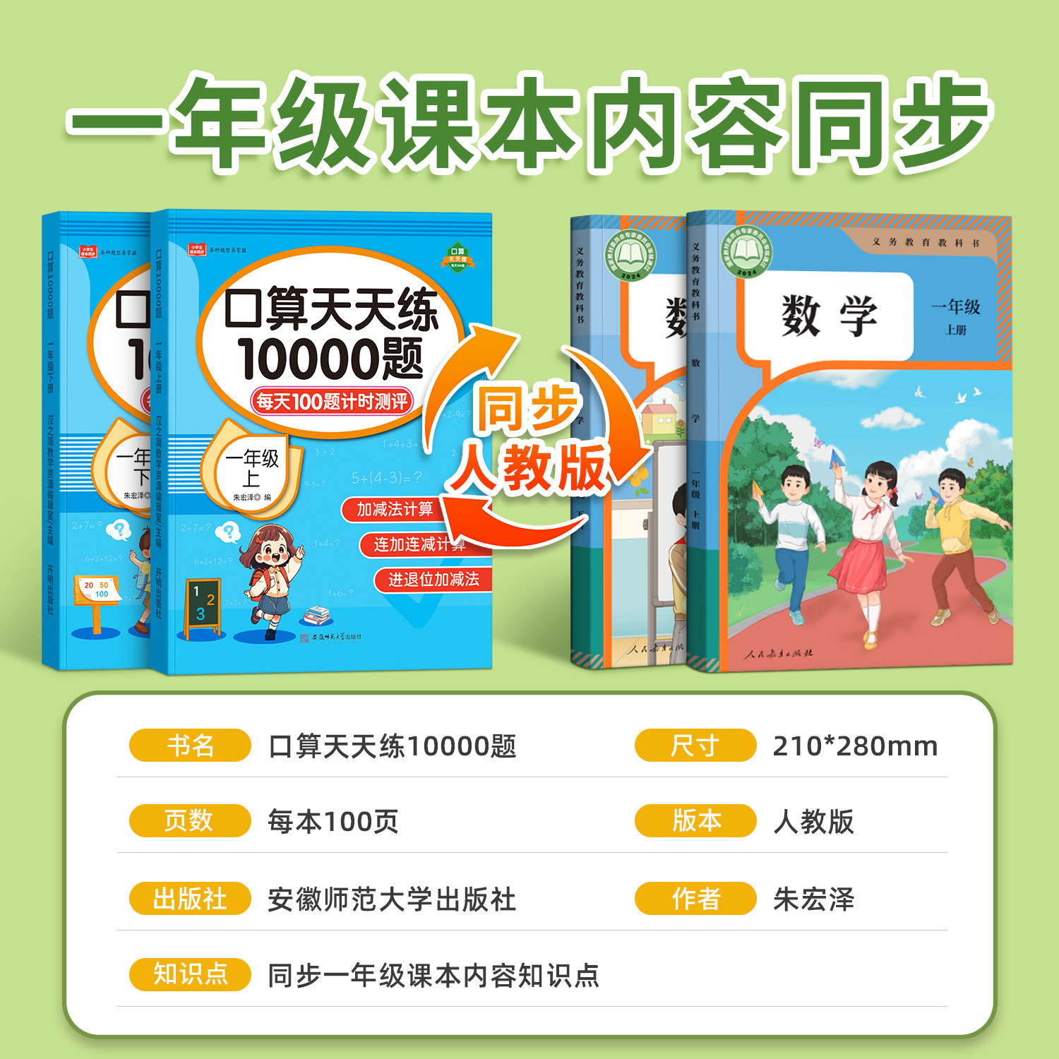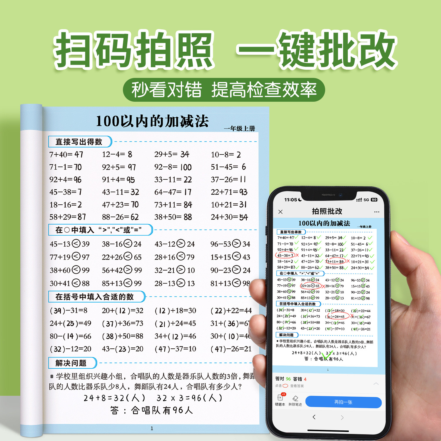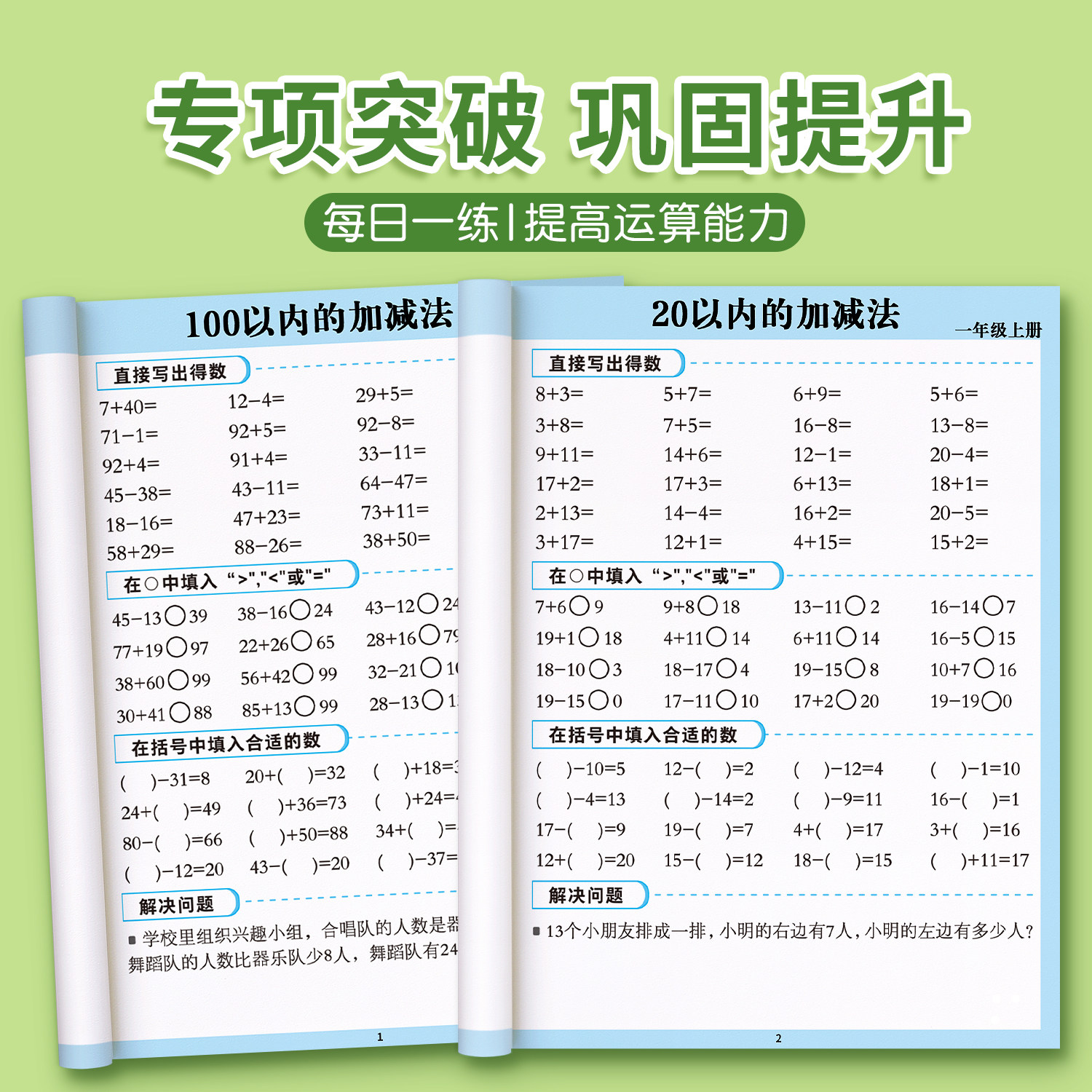 天猫一年级口算天天练上册下册数学练习题人教版二年级上口算题卡每天一练20 100以内加减法专项练习本册计算数同步练习册速算思维训练