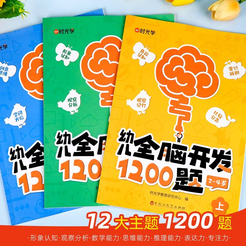 天猫【时光学】幼儿全脑开发1200题上中下全三册儿童早教书幼儿专注力练习题册宝宝数学思维逻辑训练书籍幼儿园启蒙幼小衔接 幼儿全脑