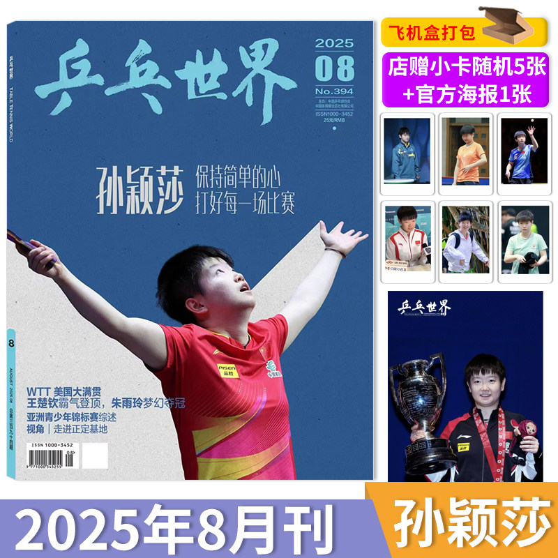 《乒乓世界》2025年12月【单期可选】聚焦国乒主力王曼昱、樊振东与王楚钦,深度解析其技术特点与赛场表现,特别推出“王楚钦特辑”,回顾其成长历程与关键战役,展现新生代领军人物的拼搏精神。同期附赠《看天下》2025年12期,多角度呈现王楚钦的场外风采与时代影响力。2026年1月新刊则聚焦“小魔王”孙颖莎,通过“乒乓球实用技术·球姿分解”专栏,以高清图解拆解其正手抢攻、反手拧拉等核心技术动作,结合科学训练理念,助力球友提升实战能力。多期联动,人物与技术并重,是乒乓爱好者不可错过的收藏级期刊组合。