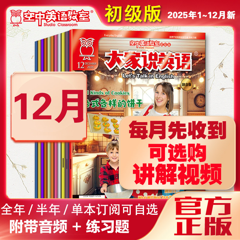 淘宝新2026年1大家说英语杂志视频空中英语教室初级版2025全年12月10-12月英语入门基础启蒙中小学初中生英语日常用语口语美语学习杂志