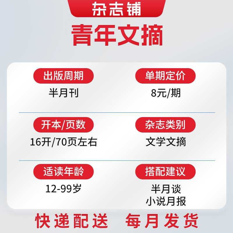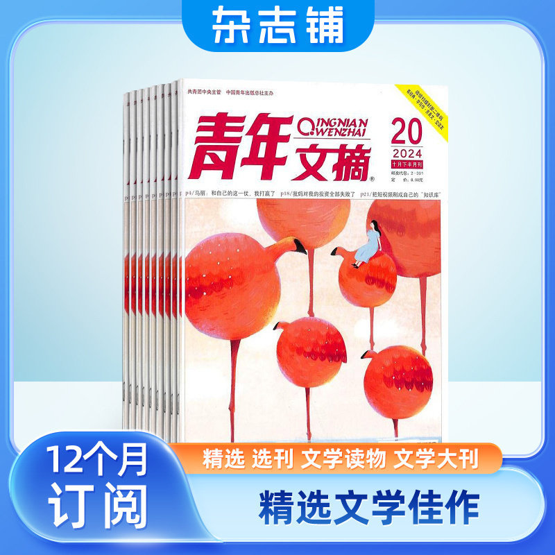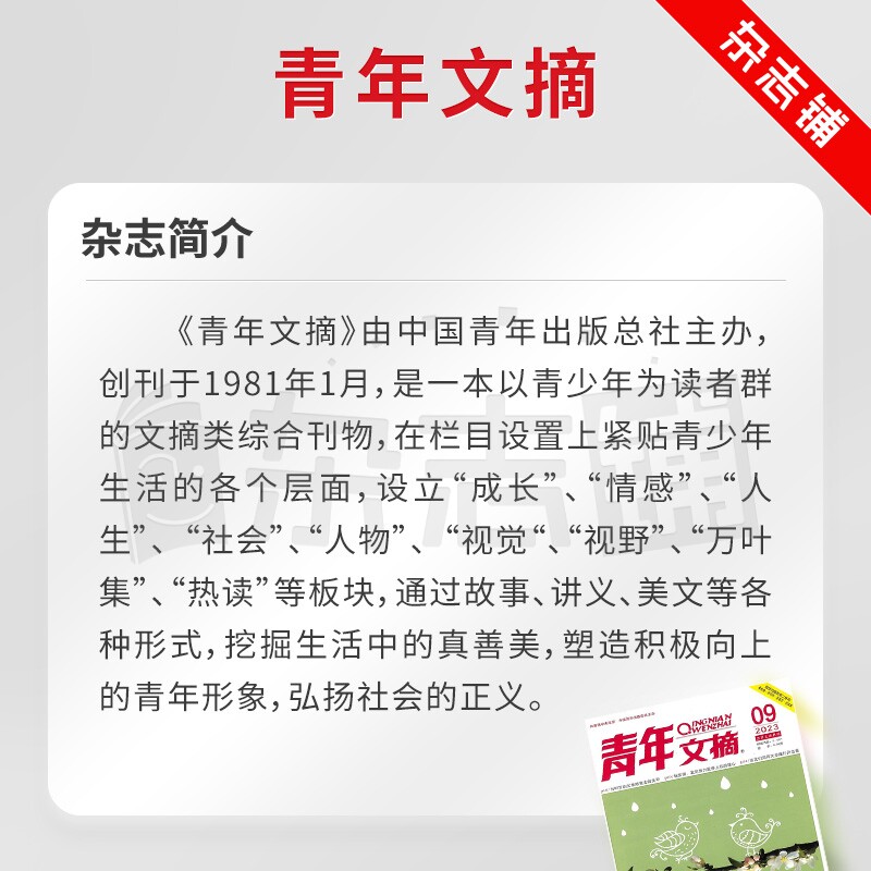 天猫青年文摘杂志 2026年1月起订 1年共24期 杂志铺 初中高中学生中高考作文素材课 心灵鸡汤励志书籍故事读者文学文摘期刊