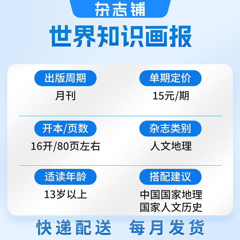 天猫世界知识画报杂志 2026年1月起订 1年共12期 人文地理杂志订阅 国际视野 图文并茂 内容丰富 大型画刊 杂志铺世界知识画报上半月