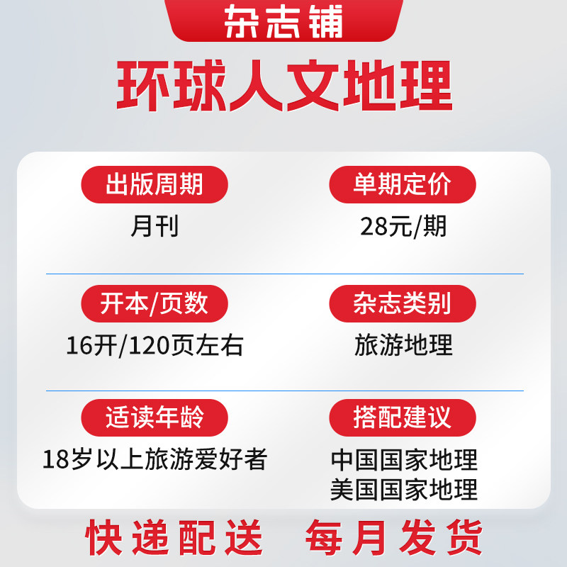 天猫环球人文地理杂志 2026年1月起订阅杂志铺 原国家人文地理1年共12期 全球人文旅游地理杂志书籍图书 旅游摄影类期刊杂志订阅