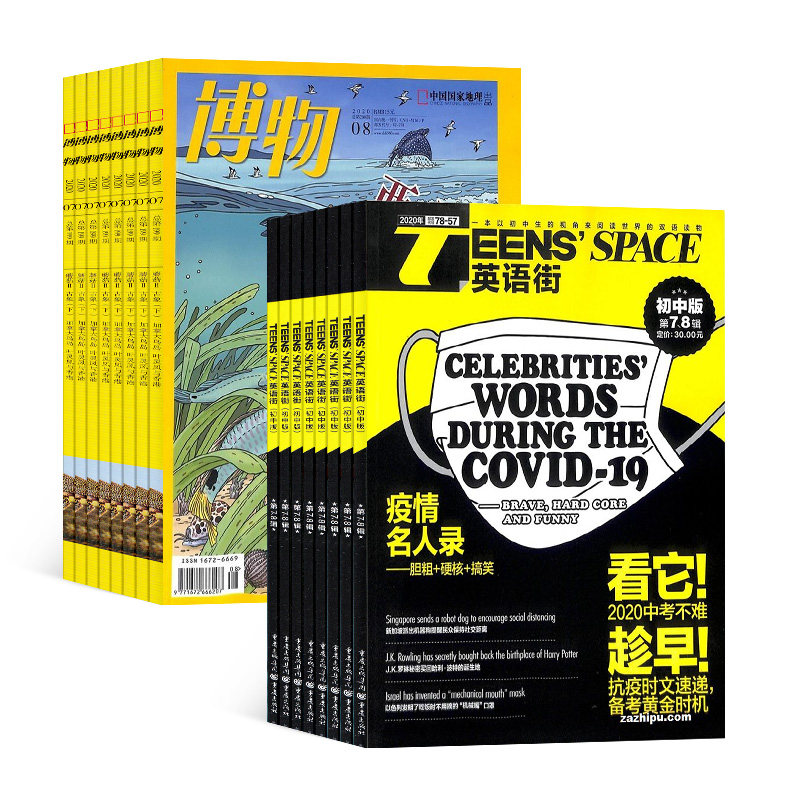 天猫博物+英语街初中版组合杂志订阅 全年订阅 2026年1月起订1年共24期杂志铺