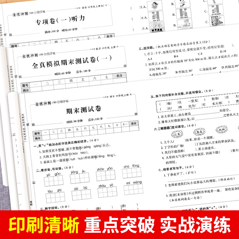 黄冈100分冲刺卷一年级二年级三年级四五年级六年级上册下册试卷测试卷全套人教版语文数学英语练习题练习册单元期末小状元达标卷