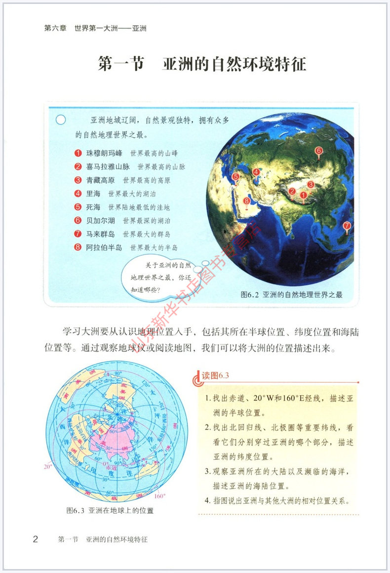 天猫中学七年级下册地理书商务版教材新华书店 初中教材商务部编版义务教育教科书课本七年级下学期地理课本商务印书馆星球地图出版社