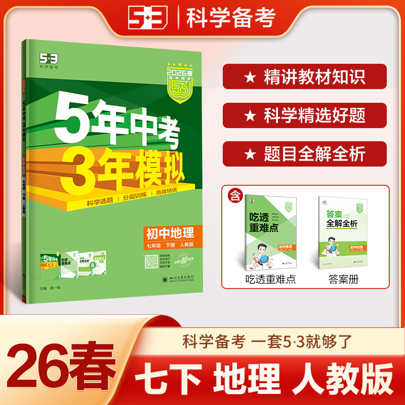 天猫广州专用】2025秋26春五年中考三年模拟七年级上下册语文数学生物地理政治历史人教英语沪教牛津版53初一中道法同步课本练习册全解