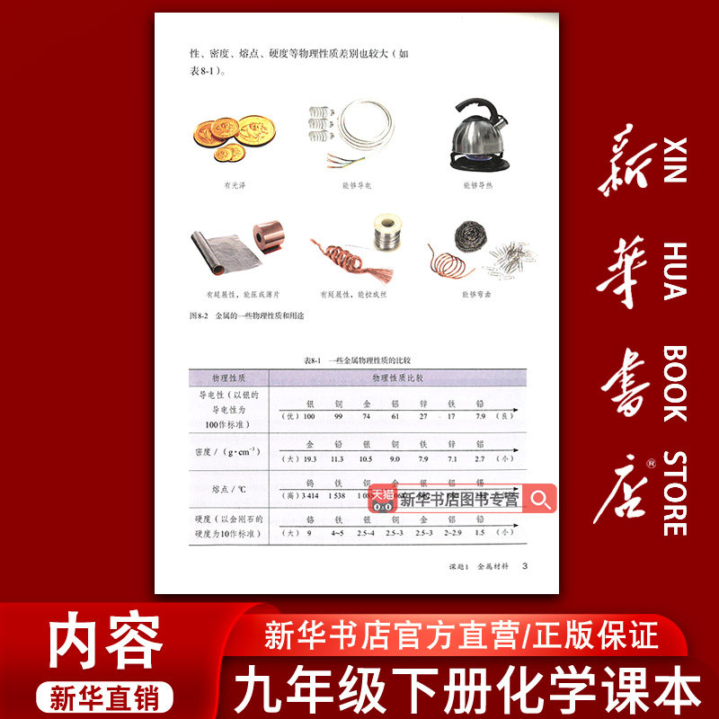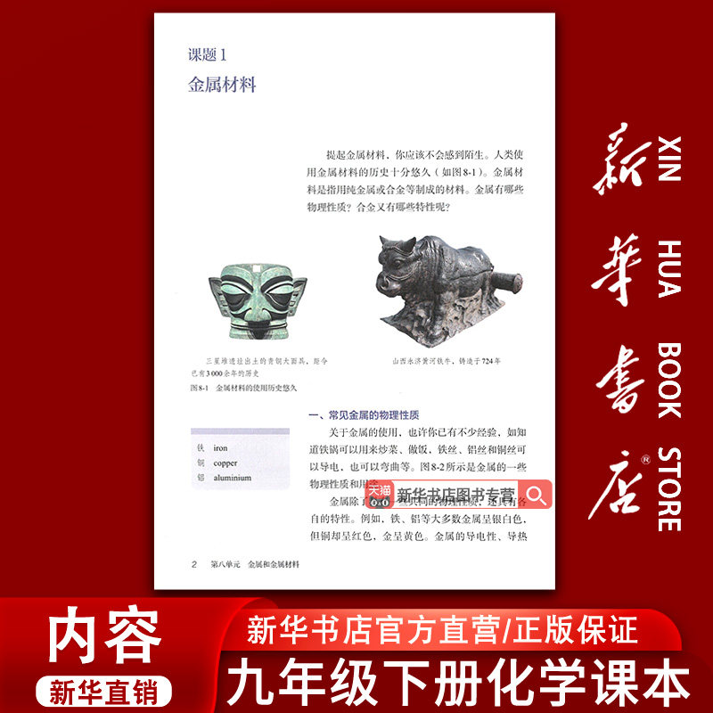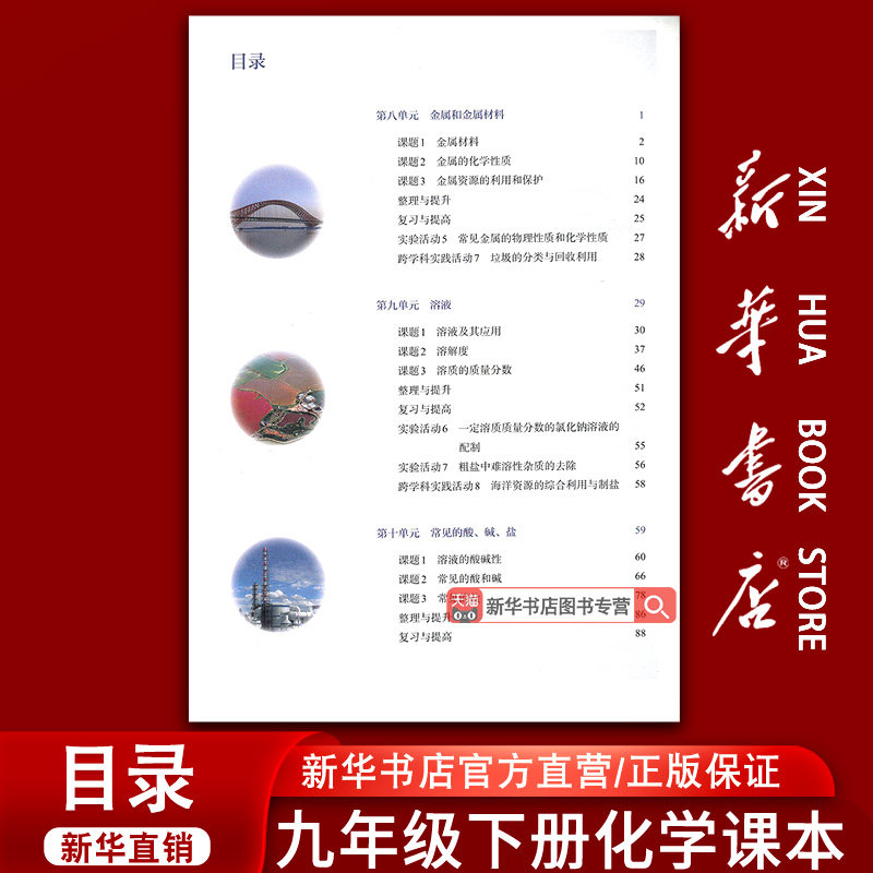 【新华书店正版】初中九年级下册化学人教版课本,是人民教育出版社出版的权威教材,适用于初三下学期学生使用。本书严格依据国家课程标准编写,内容涵盖化学基本概念、元素化合物知识、化学实验及科学探究等核心内容,注重理论与实践结合,帮助学生构建系统的化学知识体系。教材语言简洁明了,配有丰富的图表、实验案例和课后习题,便于理解与巩固。作为全国统一使用的正版教科书,本书印刷清晰、装订牢固,是九年级学生学好化学、备战中考的重要学习工具。通过系统学习,学生可提升科学素养与实验能力,为高中化学打下坚实基础。