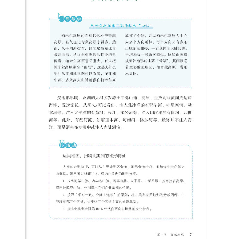 天猫人教版 七年级下册初中地理 义务教育教科书 7年级下册初一下 中学生地理课本/教材/学生用书 中学教材地理书 人教版教材 新华正版