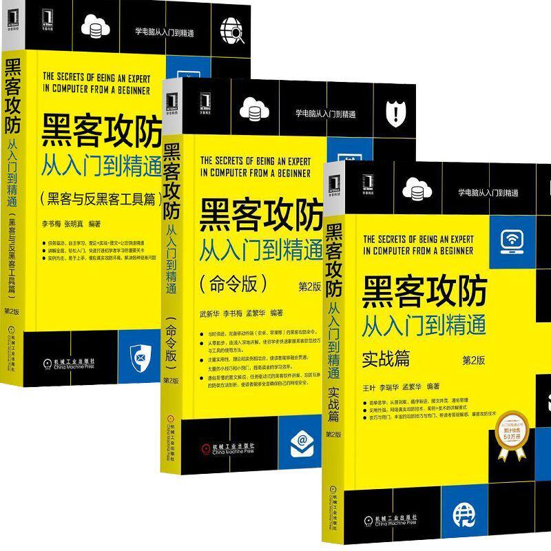 天猫【任选】黑客攻防从入门到精通全3册 实战版+命令版+黑客与反黑客工具 第2版 内网安全技术教程书籍软件工具宝典