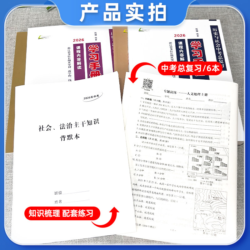 《2026杨柳文化练习精编中考总复习学习手册·历史与社会 道德与法治(全套)》专为浙江省初三学生设计,紧扣最新中考考纲与教材内容,涵盖九年级上下册全部知识点。本书融合同步练习、专题训练与综合测试卷,题型多样、难度分层,注重基础知识巩固与核心素养提升。精选典型例题,强化易错点辨析,并配有详细解析,帮助学生高效备考。结合浙江中考命题趋势,突出地域特色与时政热点,全面提升学生的理解、分析与综合运用能力,是中考总复习的权威辅导资料,助力考生夯实基础、冲刺高分。