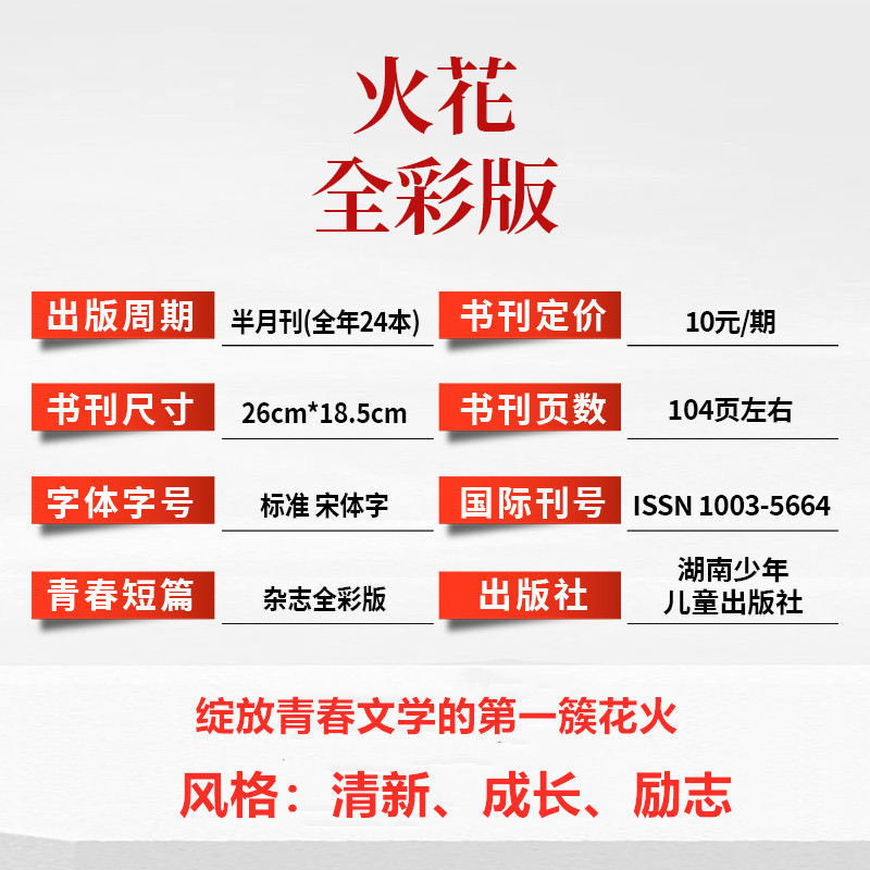 《花火》杂志全彩版2025年全年12期(1–12月)精选青少年成长励志文学佳作,内容温暖真挚,聚焦校园生活、青春困惑与梦想追求,助力中小学生心灵成长。全彩印刷,图文并茂,兼具文学性与可读性,是优质的课外读物。同时提供2024年往期捡漏合辑,性价比高,适合收藏与补阅。每期围绕不同主题,收录新锐作家与知名作者的散文、小说与心灵随笔,语言清新流畅,情感真挚动人,深受青少年读者喜爱。无论是课业之余的放松阅读,还是写作素材积累,《花火》都是理想选择,陪伴少年在文字中遇见更好的自己。