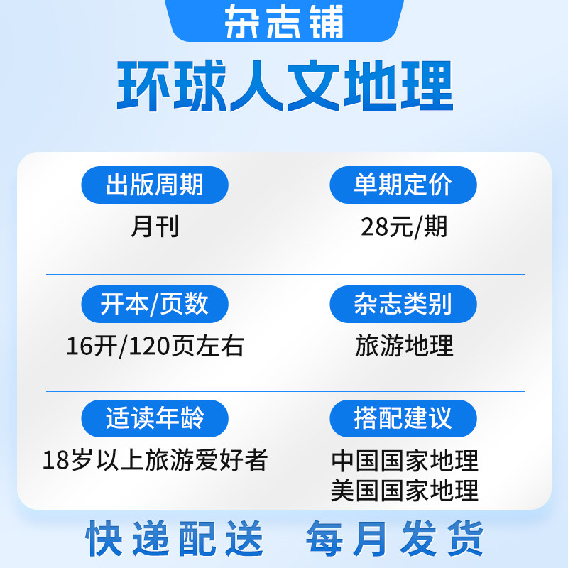 天猫环球人文地理杂志订阅 2026年1月起订 1年共12期 杂志铺 地理旅游风俗景观期刊书籍 全年订阅