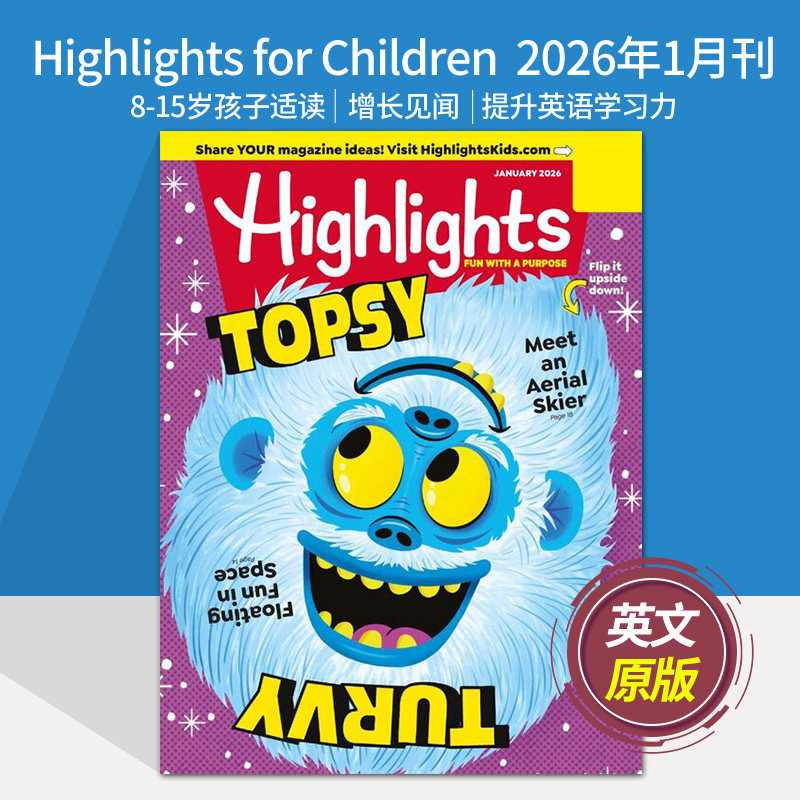 【美国原版/现货】Highlights for Children 2025/26年订阅英文书刊,专为8-15岁儿童设计,是深受美国家庭喜爱的经典少儿读物。内容涵盖科学探索、趣味谜题、短篇故事与创意活动,语言地道、图文并茂,有效提升英语阅读能力与综合素养。杂志注重启发思维、培养好奇心与价值观,适合小学生及初中生课外阅读。2023/24年往期期刊现货供应,品质保证,是家庭英语启蒙与亲子共读的理想选择。订阅即享全年12期原版杂志直邮,助力孩子在轻松阅读中爱上英语,拓展国际视野。