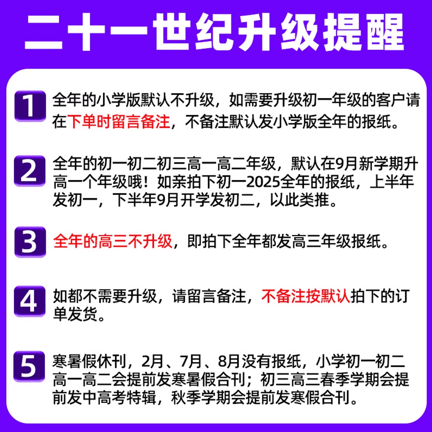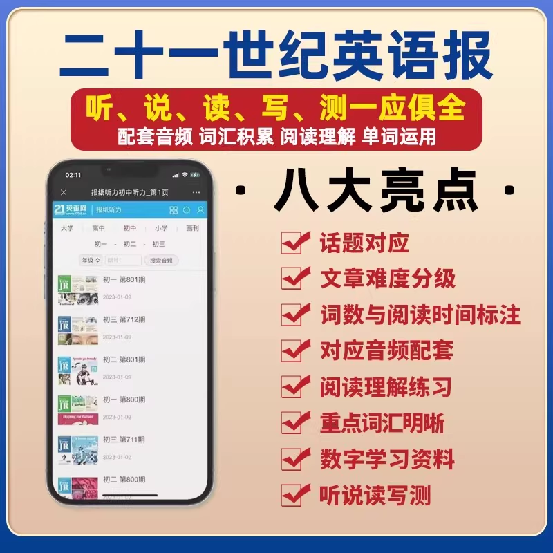 《21世纪英文报》小学版、初中版、高中版专为2025–2026学年设计,覆盖春秋两季学期,是提升青少年英语综合能力的优质读物。小学版内容生动有趣,融合故事、游戏与基础词汇,激发孩子英语学习兴趣;初中版紧扣课标,涵盖时事、文化、科普等主题,助力初一至初三学生拓展视野、夯实语言基础;高中版聚焦深度阅读与思辨能力,适合高一至高三学生备考与素养提升。各版本语言地道、难度递进,配有音频与线上资源,支持自主学习。全年订阅即享系统化学年内容,是家庭与学校理想的英语学习伴侣。