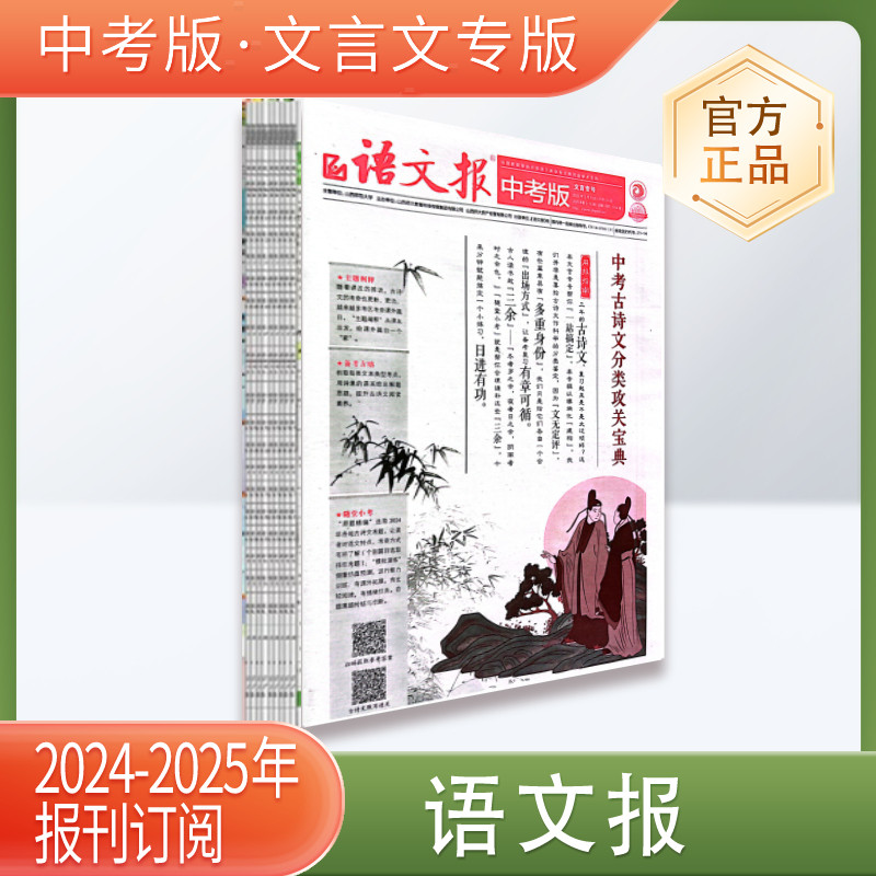 《语文报·初中版》(人教版)2025—2026学年七八九年级辅导报纸,紧扣新课标与人教版教材,精准对接中考考点。报纸以“夯实基础、提升素养、助力升学”为宗旨,内容涵盖课文解析、古诗文赏析、现代文阅读技法、写作指导及语言运用训练,兼顾知识性与趣味性。每期设单元同步练习、期中期末测评,帮助学生系统复习、查漏补缺。名师撰稿,体例科学,注重思维训练与人文熏陶,是初中生学好语文、提高成绩的理想助学读物,深受师生信赖与好评。