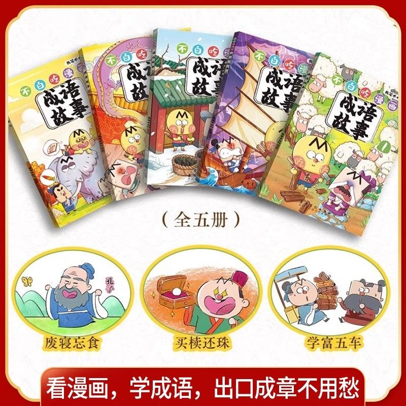 天猫不白吃漫画成语故事全5册6-12岁儿童漫画版成语故事中国历史小常识国学科普百科全书小学初中生课外阅读趣味语言表达启蒙故事书籍