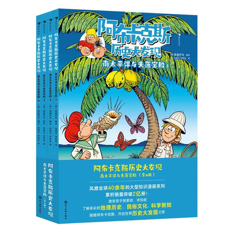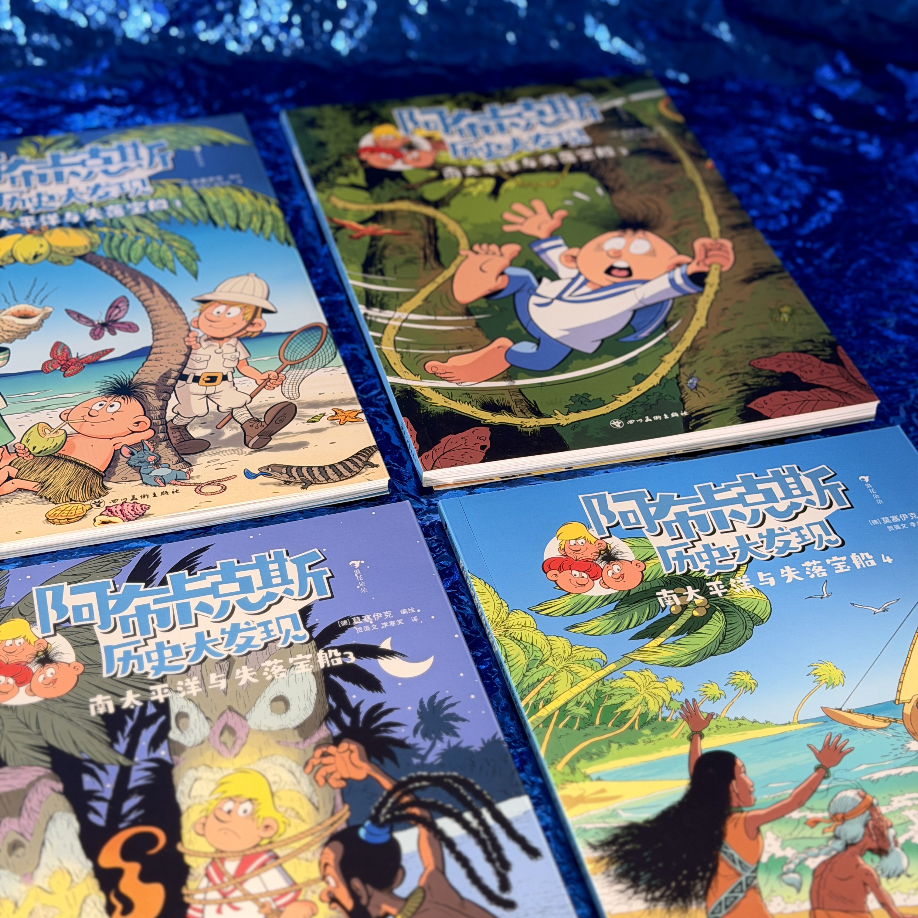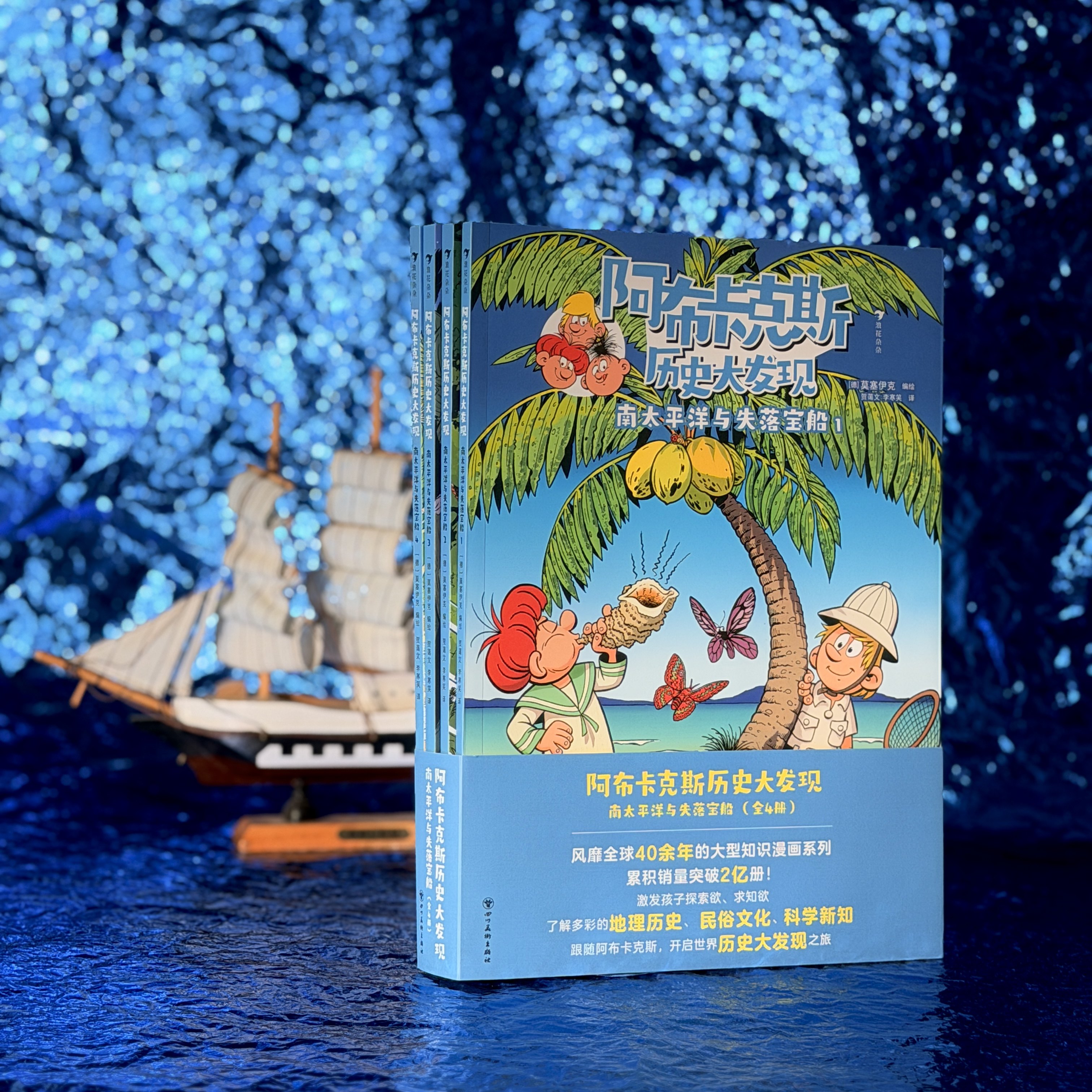 《阿布卡克斯历史大发现:南太平洋与失落宝船》是后浪童书推出的知识漫画系列,共4册,适合9岁以上儿童阅读。故事围绕阿布卡克斯三人组的航海冒险展开,他们穿越南太平洋,探寻传说中的失落宝船,途中遭遇风暴、海盗与神秘岛屿,揭开历史谜团。漫画融合真实历史背景与惊险情节,穿插地理、航海、文化等科普知识,寓教于乐。画风生动,节奏紧凑,激发孩子对世界探索的兴趣。浪花朵朵现货发售,是培养青少年阅读力与求知欲的优质读物,兼具趣味性与知识性,带领小读者在冒险中了解世界,拓展视野。