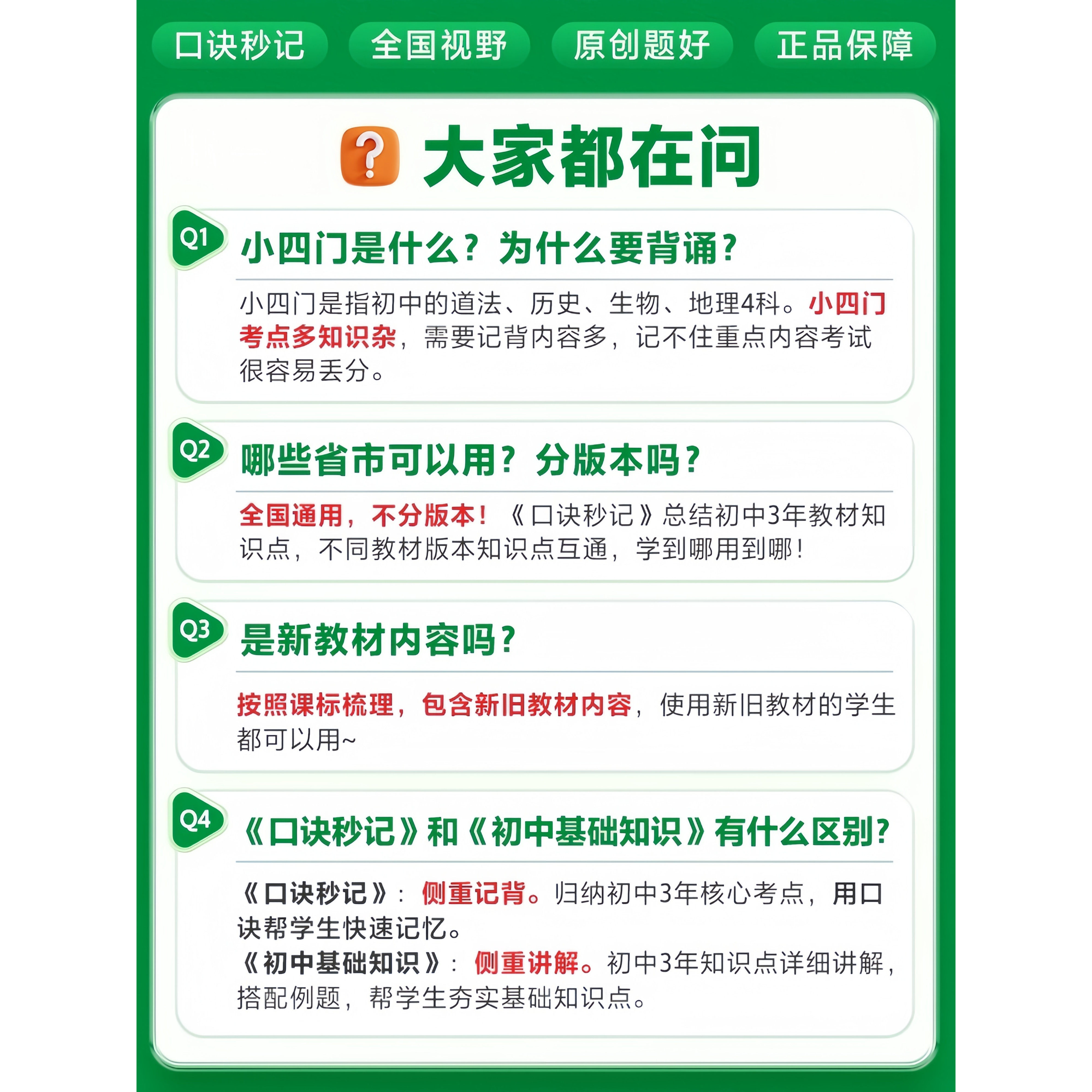 淘宝2026万唯口诀秒记小四门七八九年级初中历史道德生物地理必背知识点速记小四门万唯教育万唯中考历史知识点速记万历史口诀人教版
