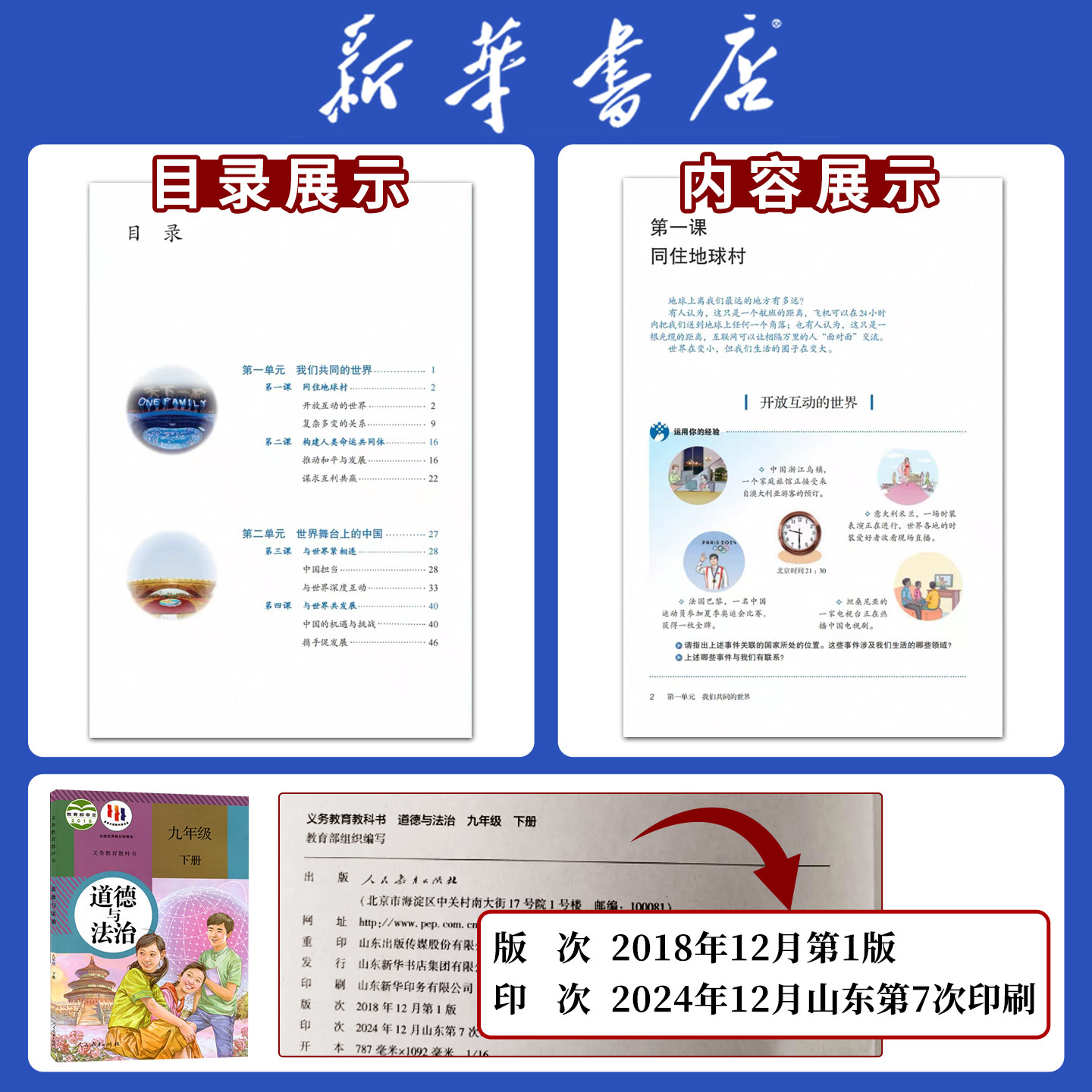 天【新华书店正版】9九年级下册政治书课本教材教科书人教版部编版初中初三3下册道德与法治下学期9九下道法人民教育出版社