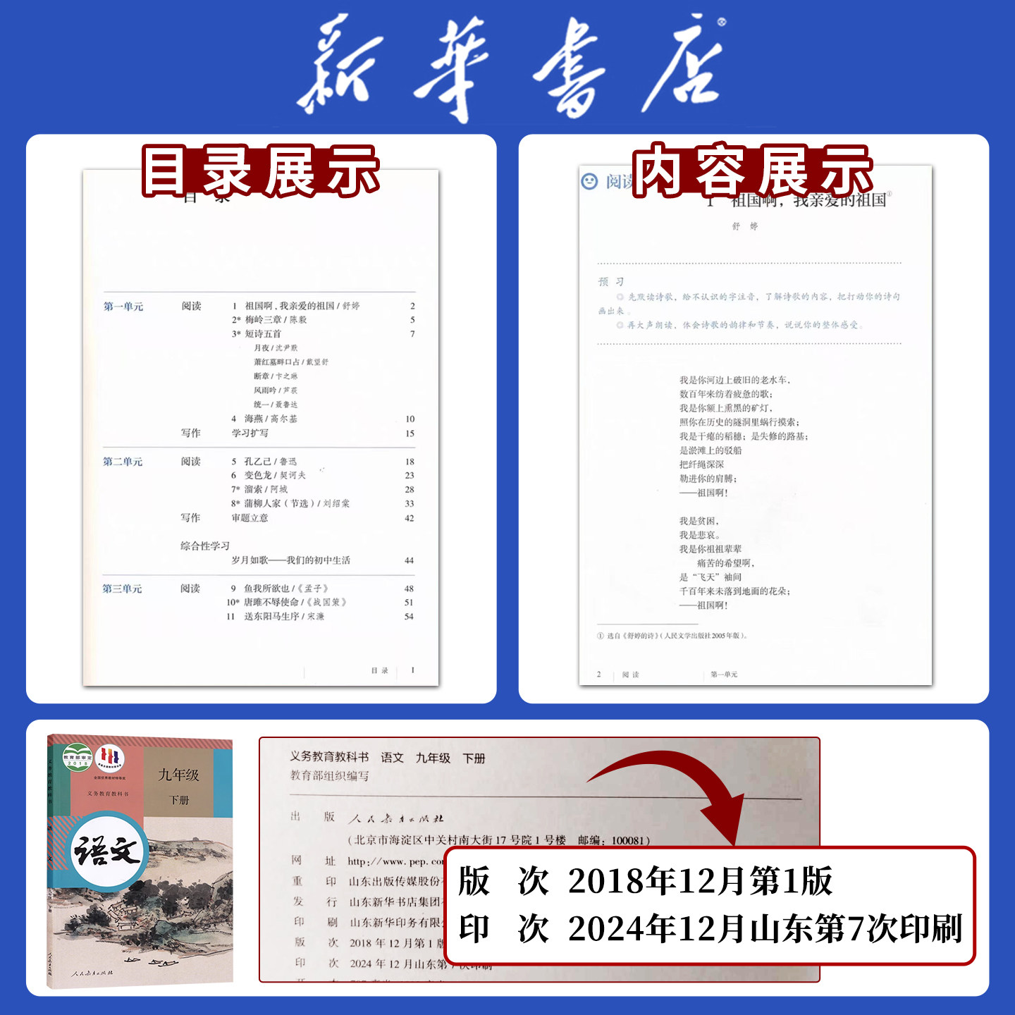 【新华书店】九年级下册全套课本9上册语文数学英语物理化学道德与法治历史书课本教材教科书人教版部编初三北师大正版新版2025