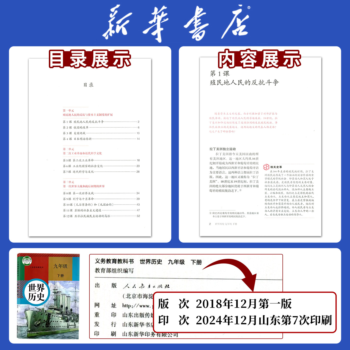 【新华书店正版】初中9九年级下册历史课本教材教科书人教版部编版九年级世界历史书下册初三3下册人民教育出版社九下历史