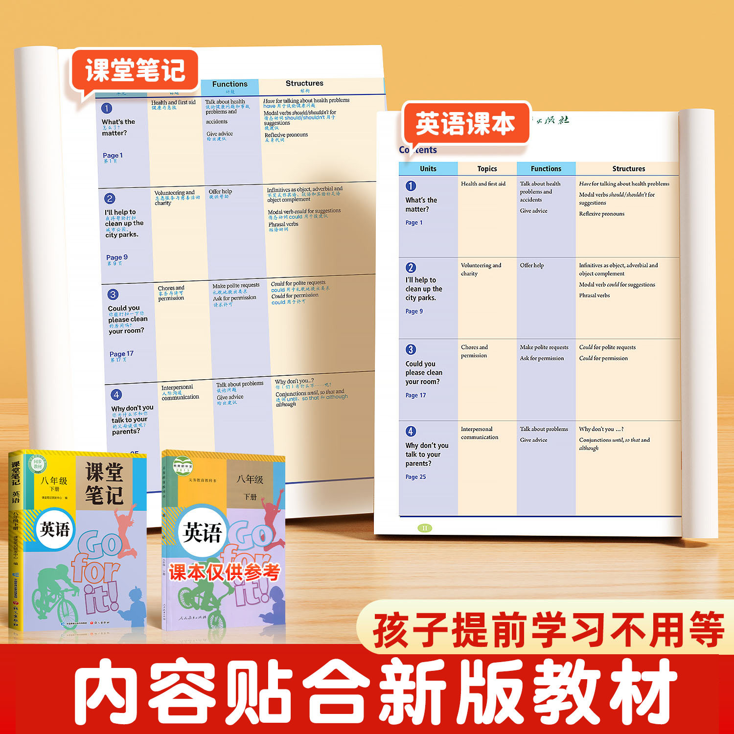 天猫2026春季新版英语课堂笔记八年级下册英语新教材上册人教版外研版译林全套初二初中同步课本中学教材全解解读预习随堂笔记教辅资料