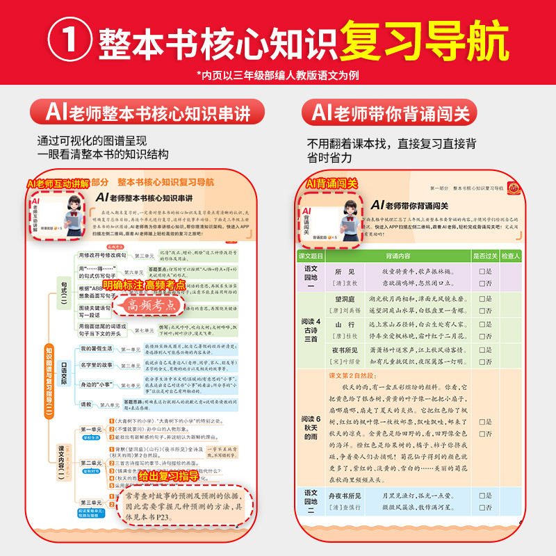 2025秋上册《王朝霞过课本·期末复习导航》专为小学一至六年级学生设计,紧扣人教版、北师大版、苏教版语文及数学、英语教材,系统梳理单元重点、难点与考点。丛书以“过课本”为核心理念,帮助学生夯实基础,构建知识体系。配套AI老师智能辅导,提供个性化学习建议与错题解析,助力高效复习。精选期末冲刺卷,题型全面、难度适中,精准模拟考试情境。无论是日常巩固还是考前冲刺,都能让学生查漏补缺、提升信心,轻松应对期末考试,是家长信赖、学生喜爱的高效复习好帮手。