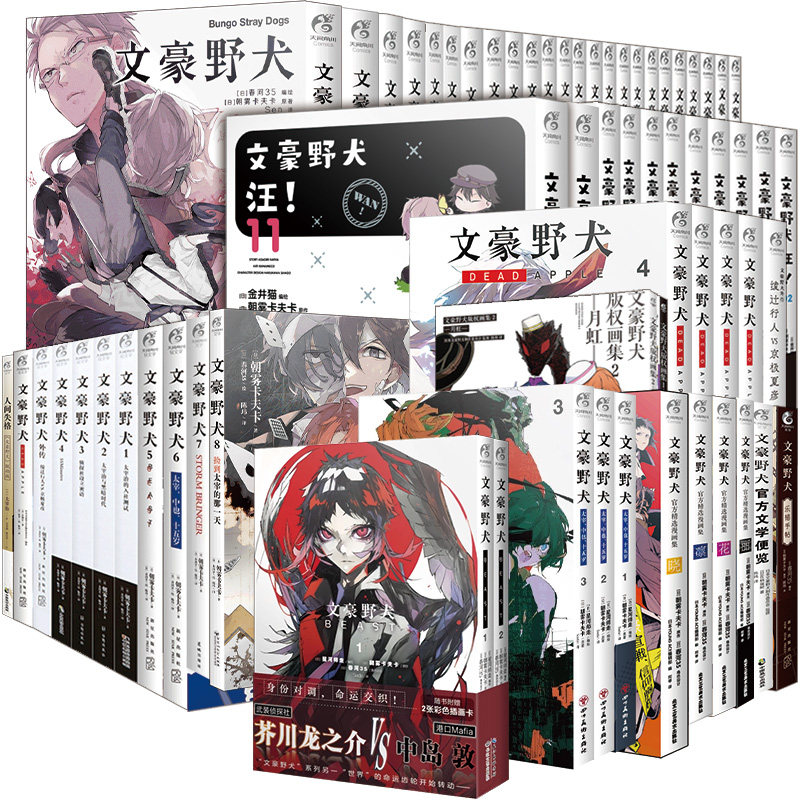 【天闻角川正版】文豪野犬系列包含漫画1-25册、小说《BEAST》1-8册及官方精选漫画集1-6册,由朝雾卡夫卡原作、春河35作画,全面呈现异能战斗与文豪人设交织的奇幻世界。作品融合太宰治、中岛敦等真实文豪元素,构建港黑、侦探社等多阵营对抗的if线与主线剧情。轻小说《BEAST》以平行世界展开暗黑叙事,深化角色命运。官方精选集收录高人气番外与设定资料,满足粉丝收藏需求。全系列由天闻角川正版引进,品质保障,是文豪野犬爱好者不可错过的完整典藏套装。