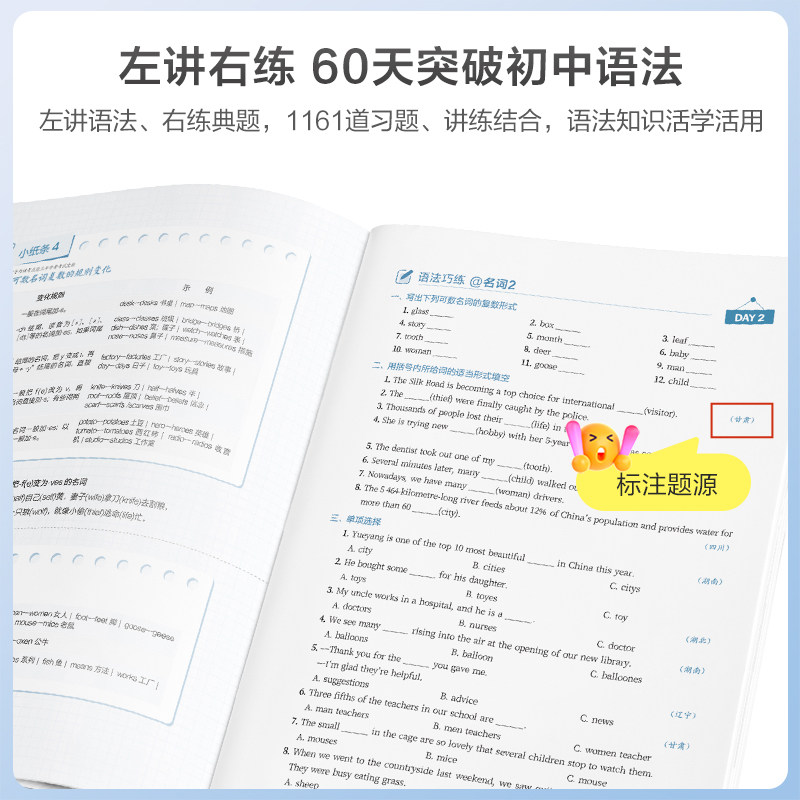 天猫2026新版星火英语初中英语语法120张小纸条语法知识点大全初一初二初三中考语法专项训练习题册七年级上册八九年级每日打卡练习