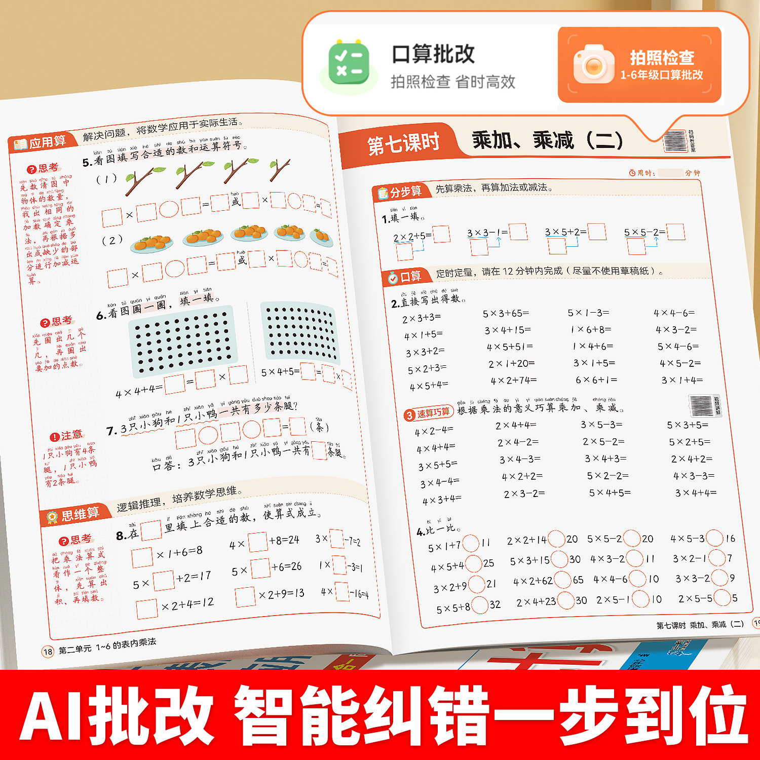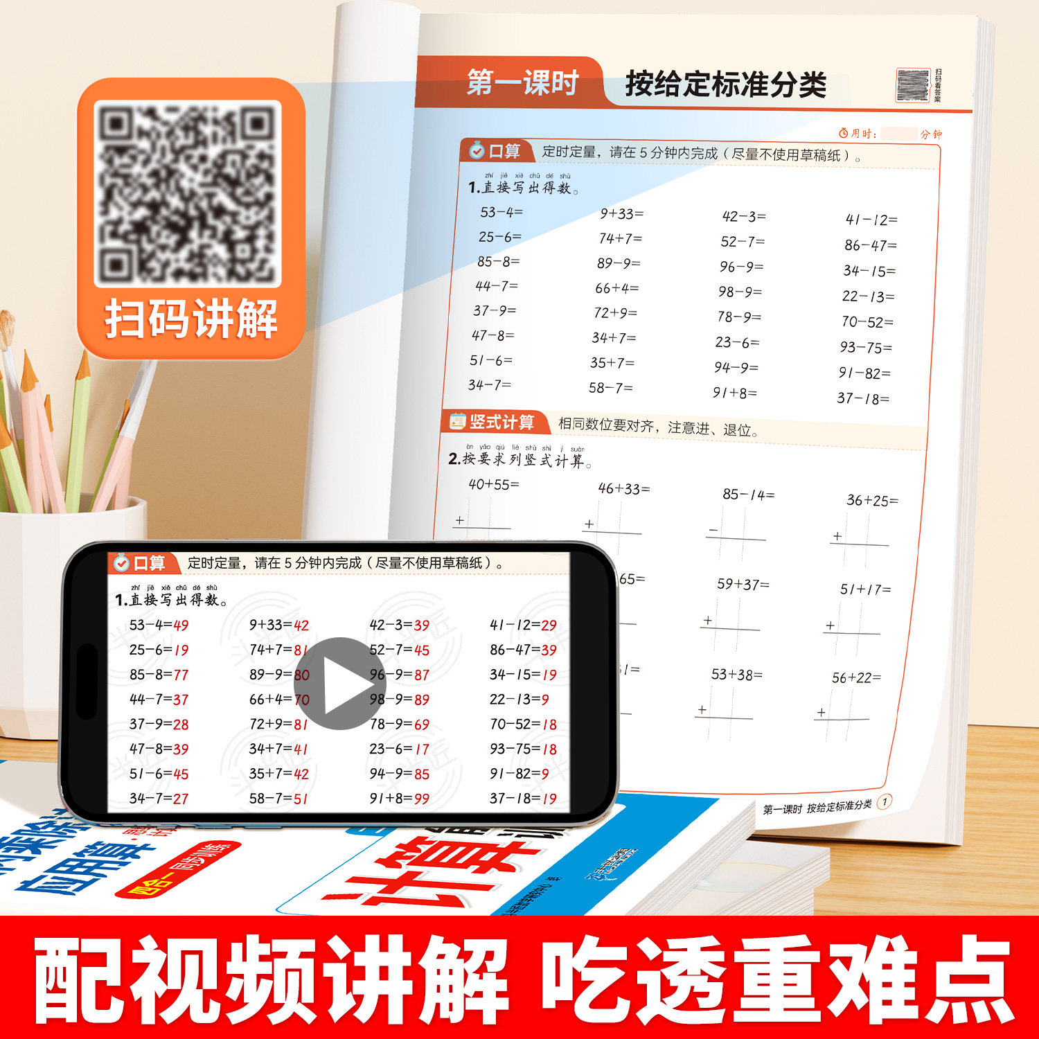 小学一二三年级上册下册数学口算天天练口算题卡竖式脱式应用题四合一计算题专项强化训练习题册一升二升三学口算每天一练思维训练