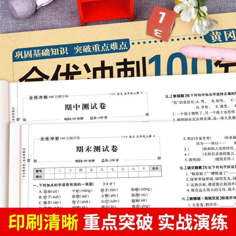 天黄冈100分冲刺卷一年级二年级三年级四五年级六年级上册下册试卷测试卷全套人教版语文数学英语练习题练习册单元期末小状元达标卷