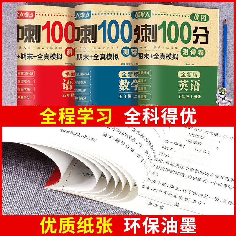 黄冈100分冲刺卷一年级二年级三年级四五年级六年级上册下册试卷测试卷全套人教版语文数学英语练习题练习册单元期末小状元达标卷