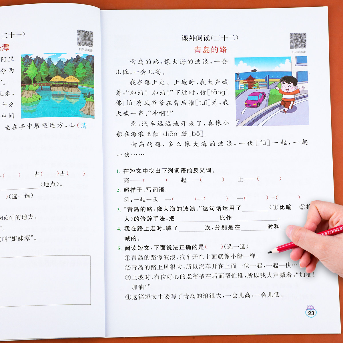 《二年级上册阅读理解专项训练(人教版)》专为小学二年级学生设计,紧扣语文课本教材,同步课内学习进度。本书精选80—100篇适合二年级学生阅读能力的短文,涵盖童话、寓言、生活故事等多种体裁,内容丰富有趣。每篇配有针对性练习题,帮助学生掌握提取信息、理解词句、概括内容等核心阅读技巧。通过“每日一练”的形式,循序渐进提升阅读理解能力,巩固课堂所学。题目设计科学,答案解析清晰,便于家长辅导和孩子自主学习。是二年级学生夯实语文基础、提升阅读素养的理想课外辅导读物,助力孩子轻松应对考试与日常学习。